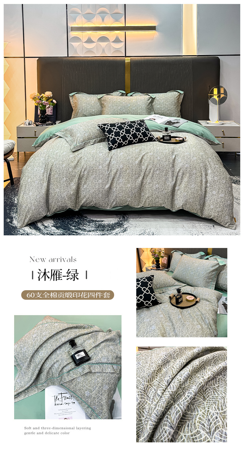 (总)红日子纺织品 2025新款全棉纯棉数码印花四件套,花暖容颜-绿,波斯记忆-蓝,茶山露水-桔,淡雅清风-蓝,芳若-绿,花情共舞-米,焕彩玫瑰-黄,美尼尔-粉,莫兰迪-紫,莫妮花园-粉,浓情蜜意-粉,翩翩花语-绿,秋日盛情-黄,日落花雨-灰,如若梦境-绿,诗丹娜-深蓝,邂逅柔情-蓝,秀雅佳人-灰