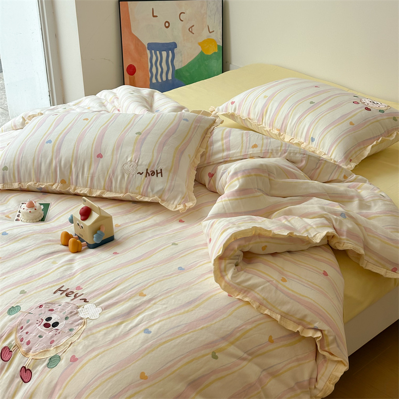 (总)潘朵拉家纺 2025条纹花边牛奶绒四件套,条纹曲-黄蓝,条纹曲-蓝粉,条纹曲-绿紫,条纹曲-紫粉