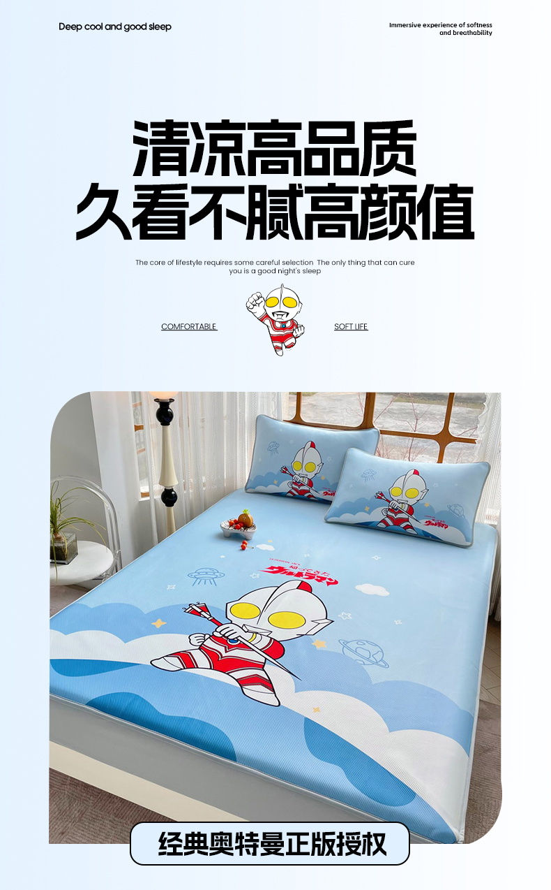 当前位置: 91家纺网 > 商品网购 > 床上用品 > 凉席 > 其他凉席 > 蘭菲家纺 2025新款冰丝奥特曼凉席套件 独行者
