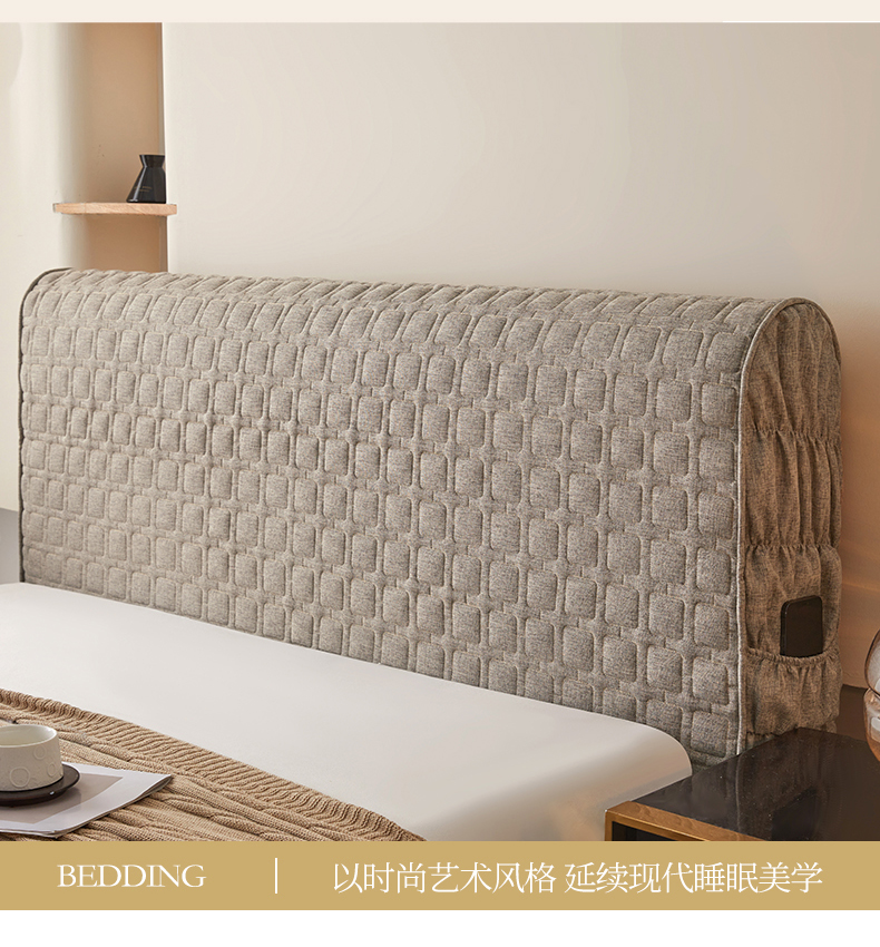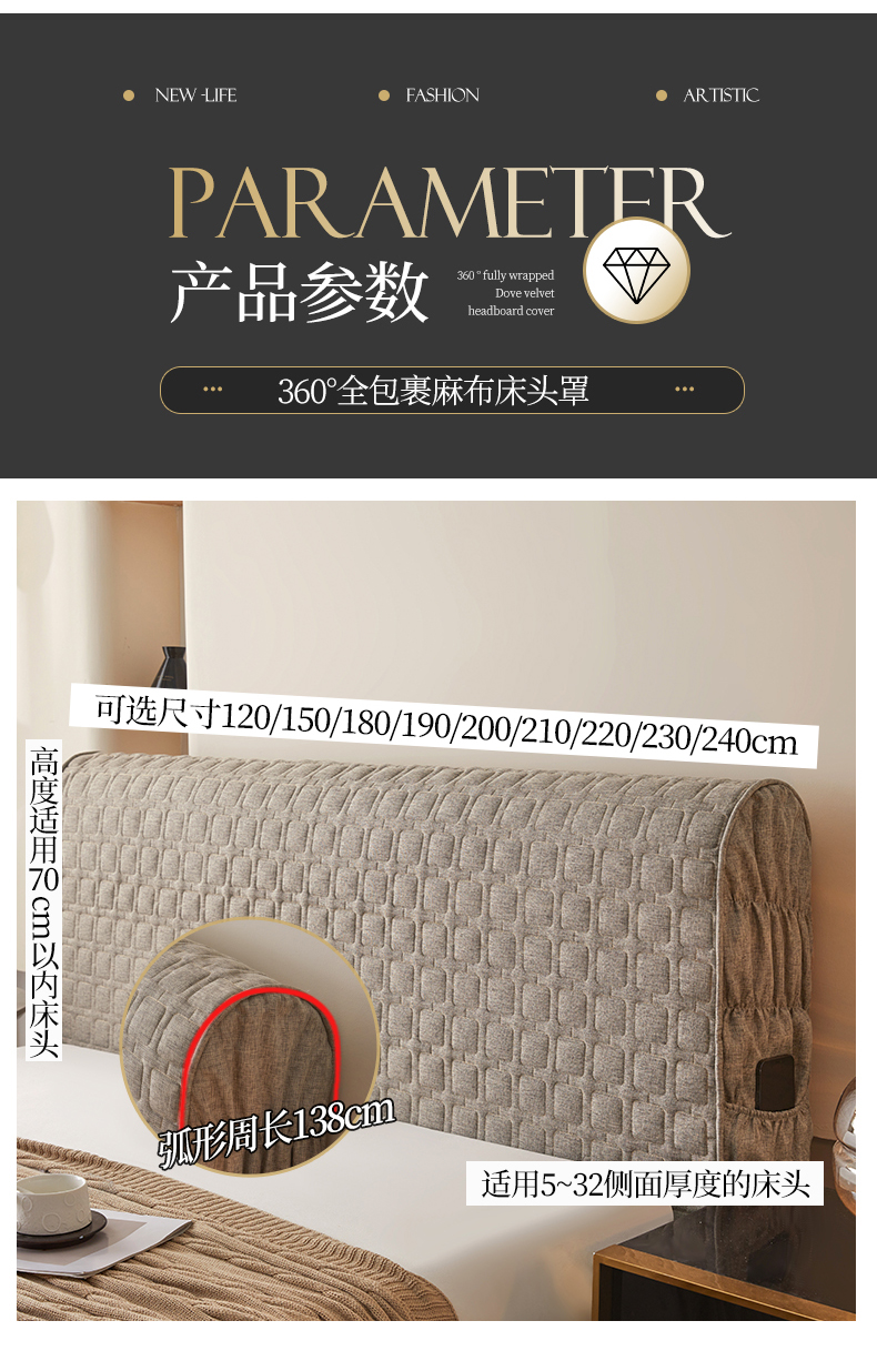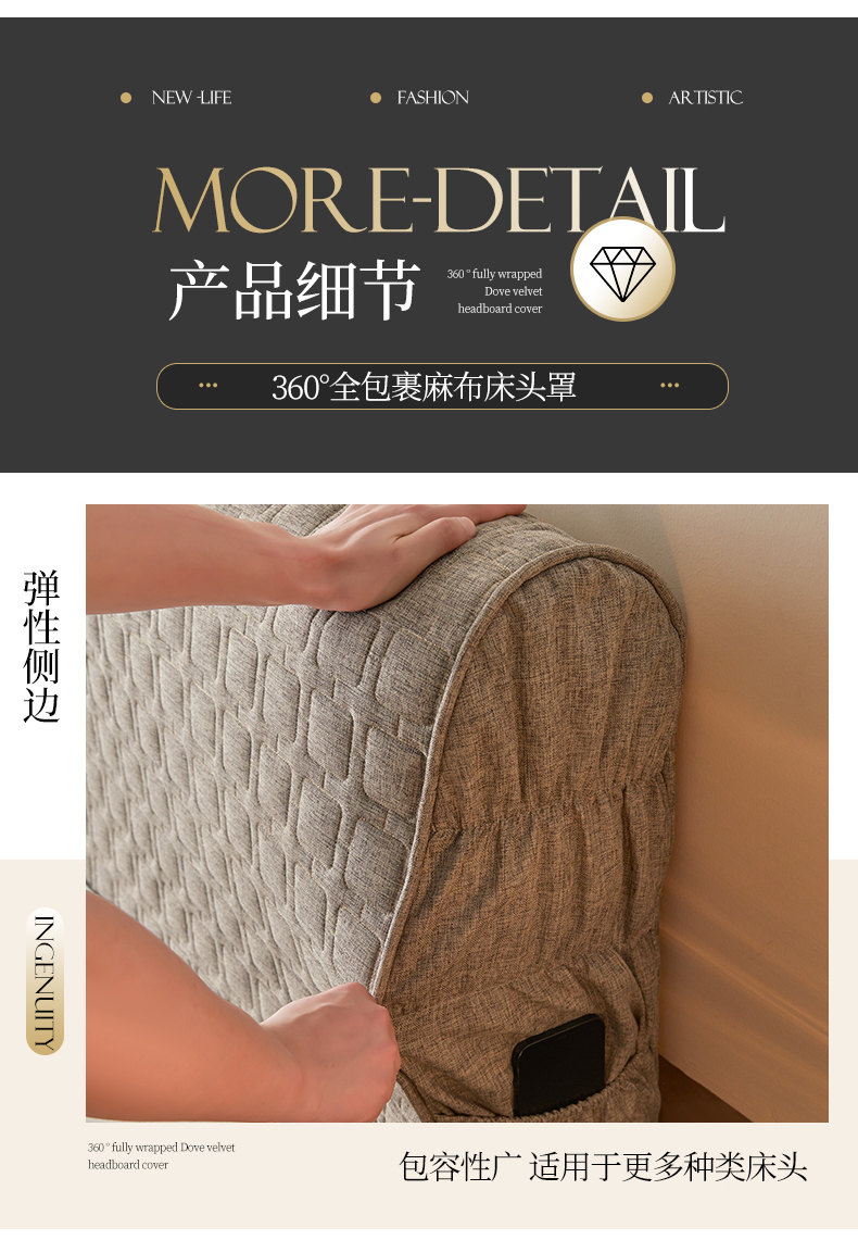 • 91家纺网 家纺一手货源 找家纺 情恒家纺 2025新款麻布全包床头罩 麻布-星光灰