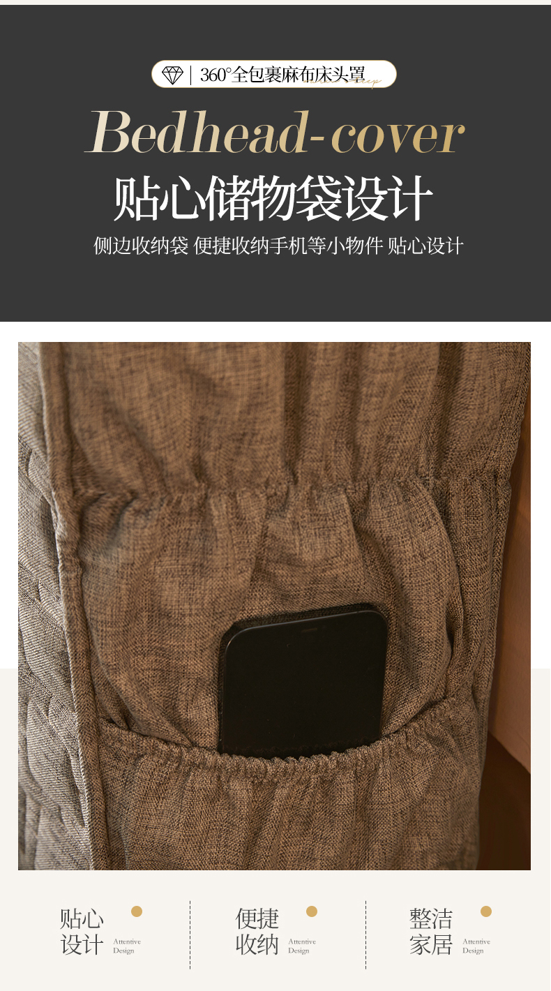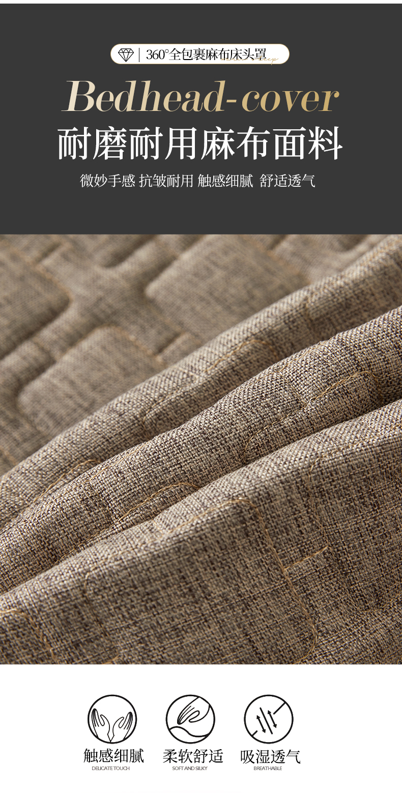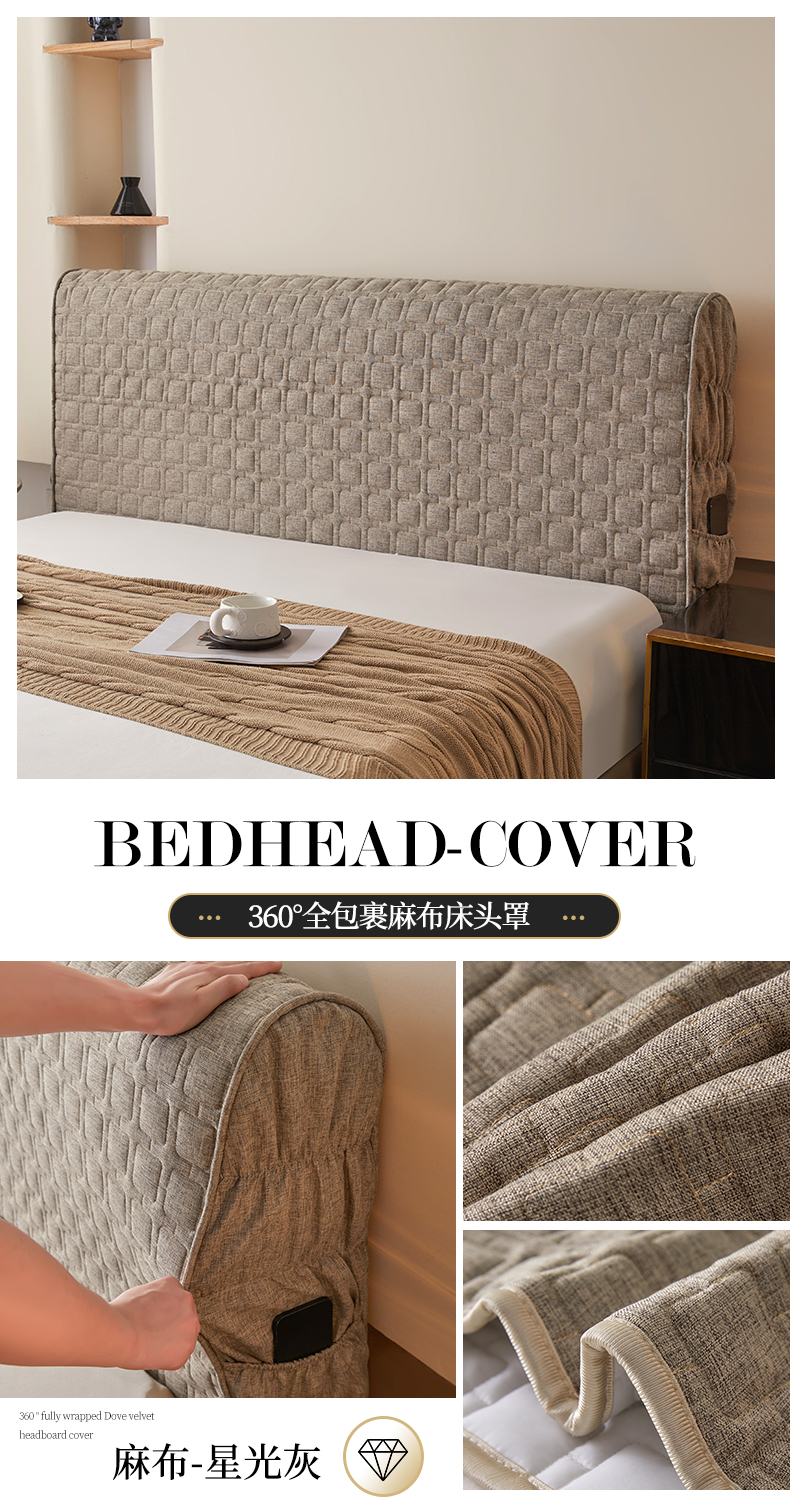 情恒家纺 2025新款麻布全包床头罩 麻布-星光灰