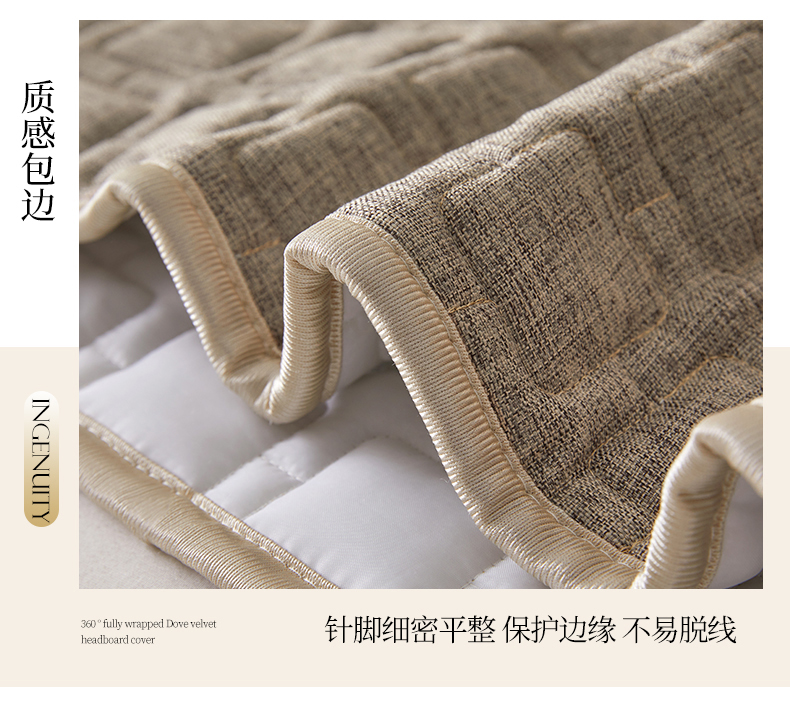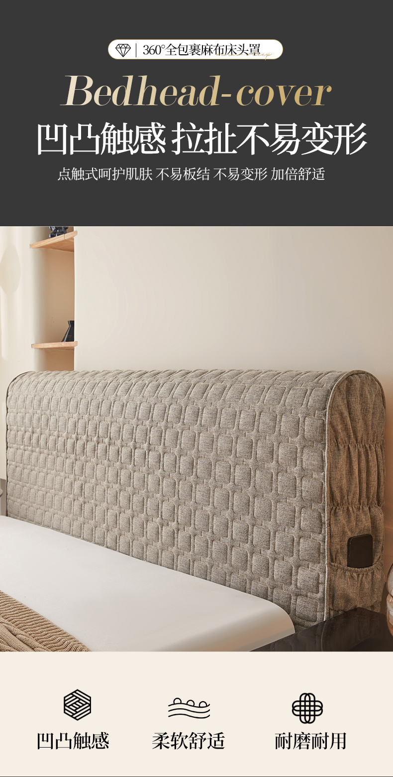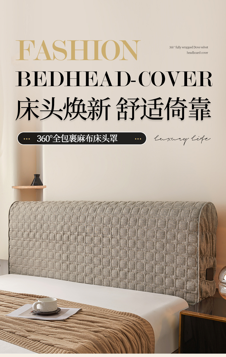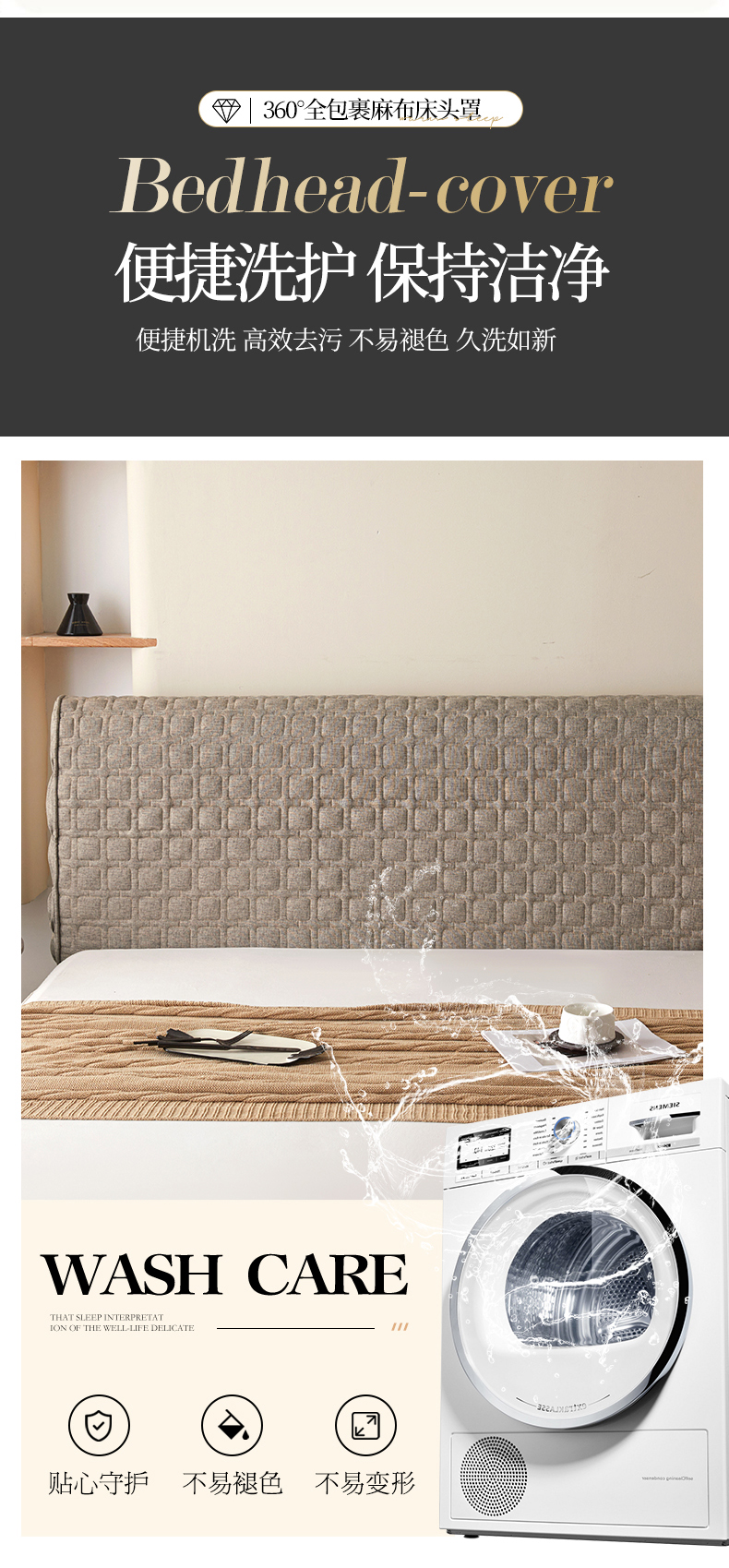 情恒家纺 2025新款麻布全包床头罩 麻布-星光灰