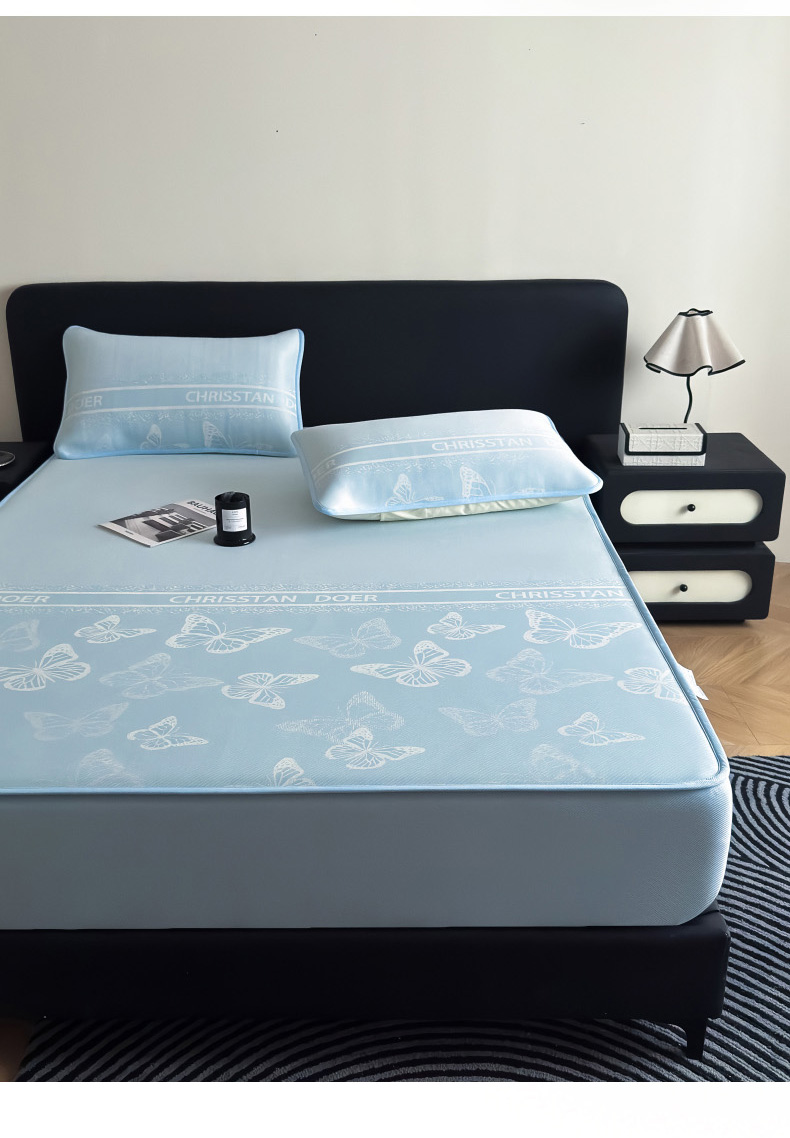 九花鹿 2025新款A类PE凉感提花床笠款冰丝凉席软凉席可机洗可水洗 蝶舞(浅绿)