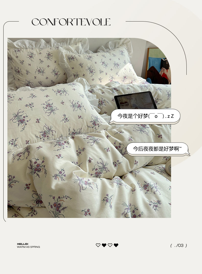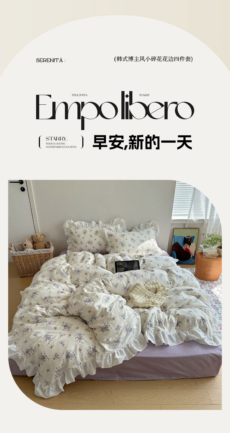 (总)六巷胡同 2026春夏新款INS博主风韩系小碎花全棉花边款四件套,南乔,贝芮,浅栀,苏汐,予椿,允夏,知棠