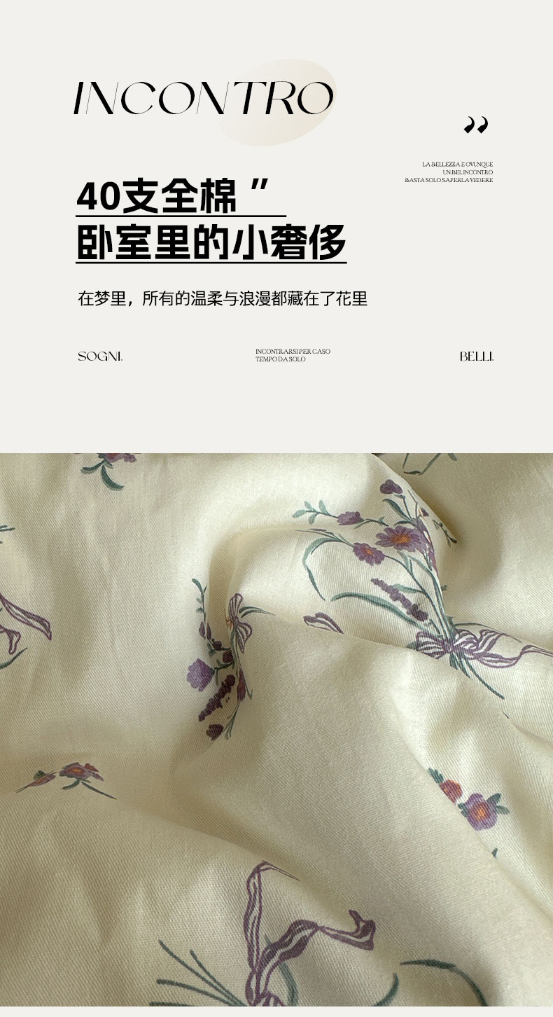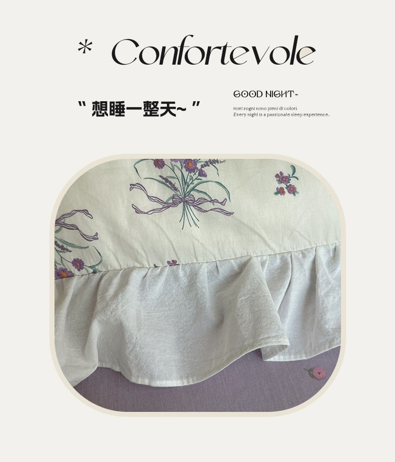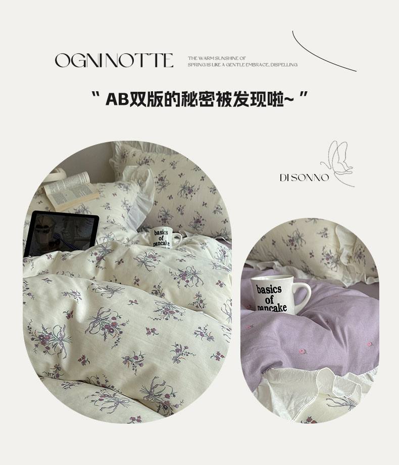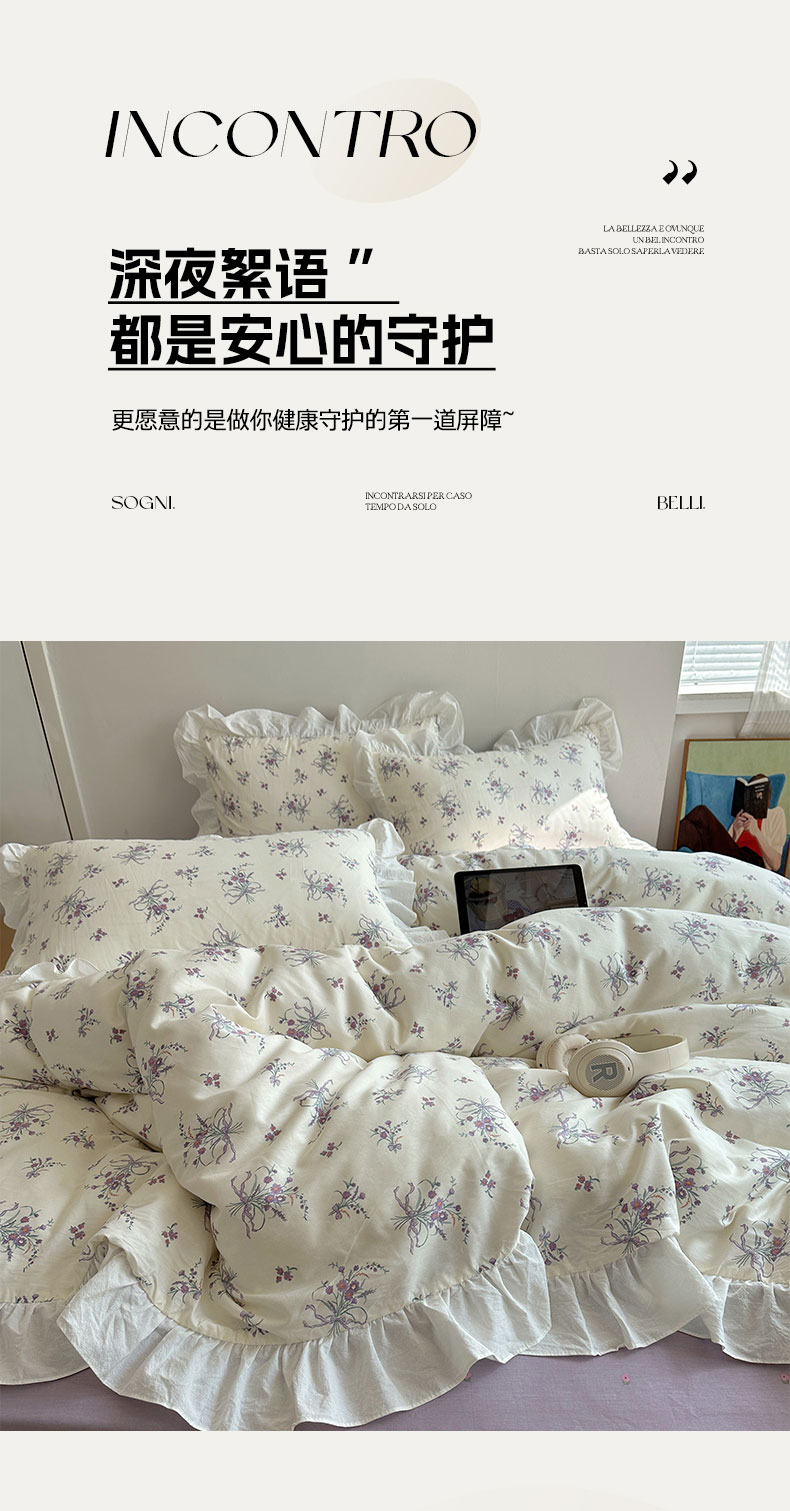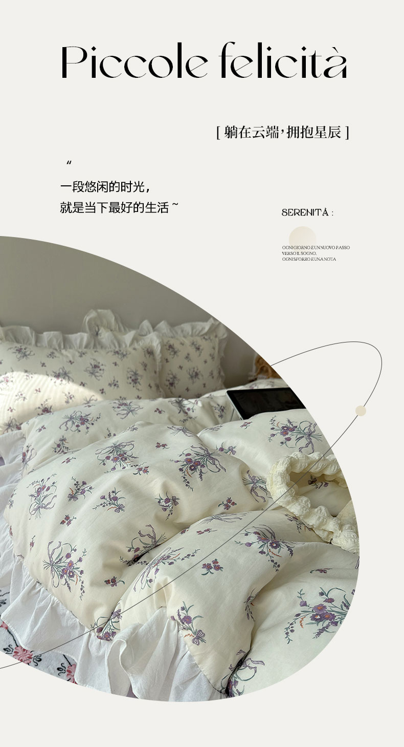 商品名称:六巷胡同 2025新款40支全棉韩式INS博主风小碎花花边四件套-风格二 堇色