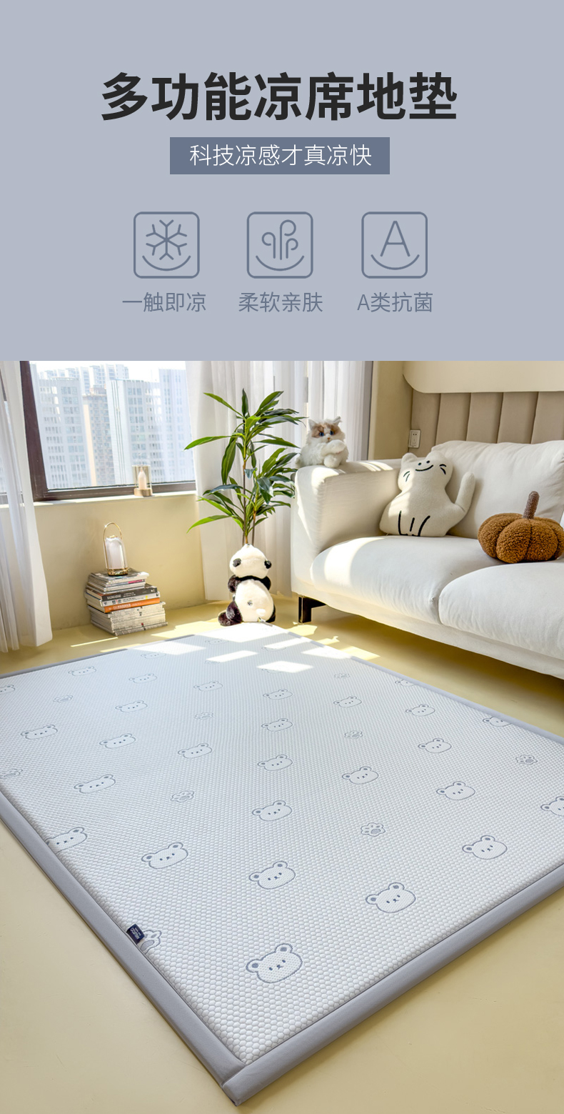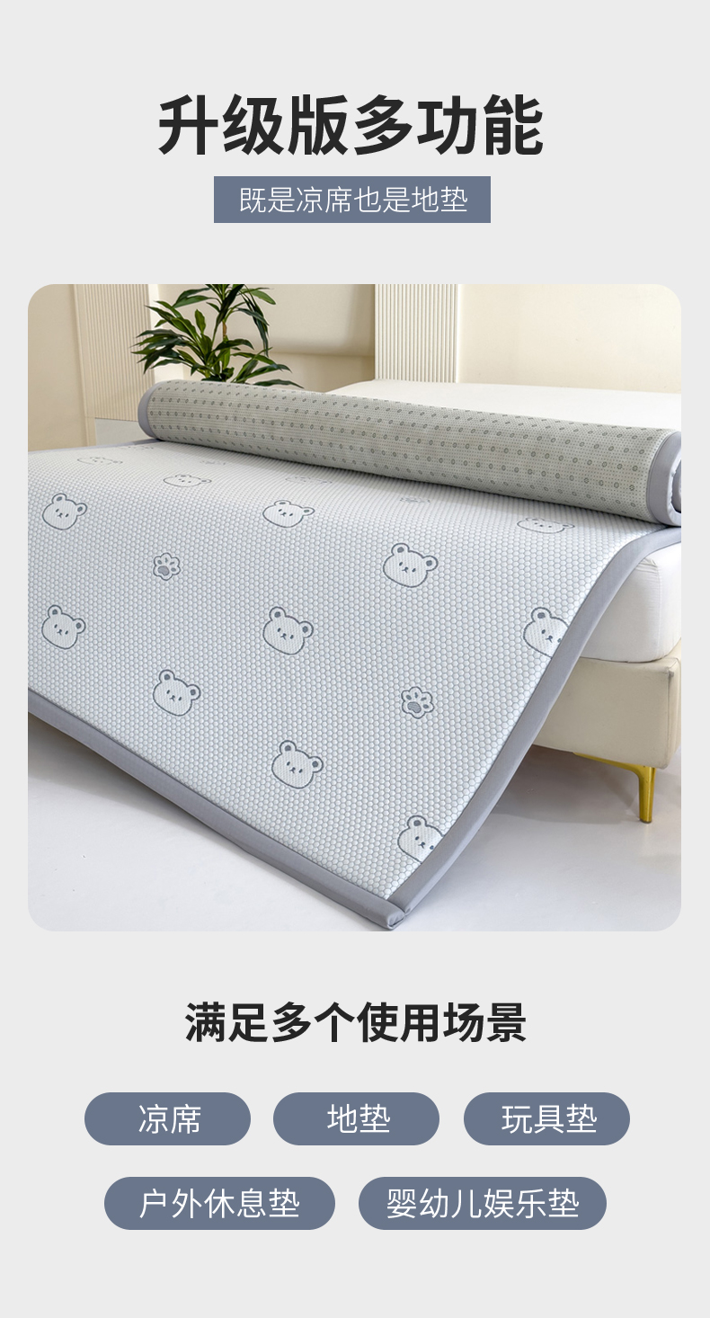 (总)席世家 2025新款凉感豆豆多功能地垫凉席垫,波洛格-粉,波洛格-灰,波洛格-蓝,波洛格-米,小熊-粉,小熊-蓝