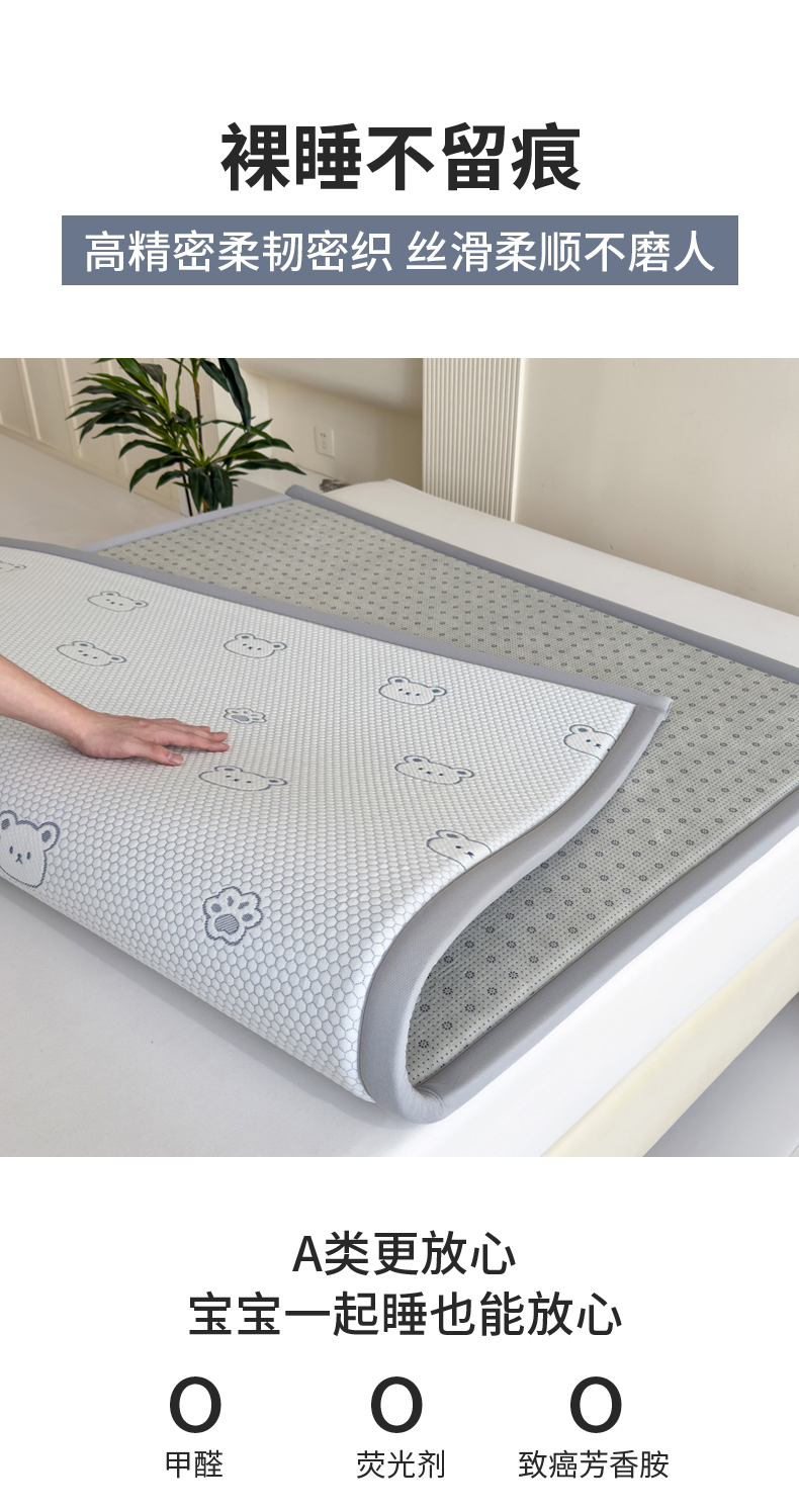 (总)席世家 2025新款A类凉感冰豆豆凉席-花卉卡通系列,呆萌熊猫,绿意,萌兔,小熊-粉,小熊-蓝,花漾