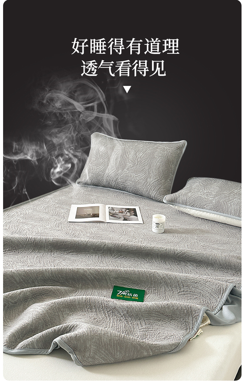 当前位置: 91家纺网 > 商品网购 > 床上用品 > 凉席 > 冰丝席 > 鑫钰 2025新款A类进口PE高冷感凉席高端聚乙烯凉豆豆高克重480克冰丝凉席床笠三件套 云锦-银灰
