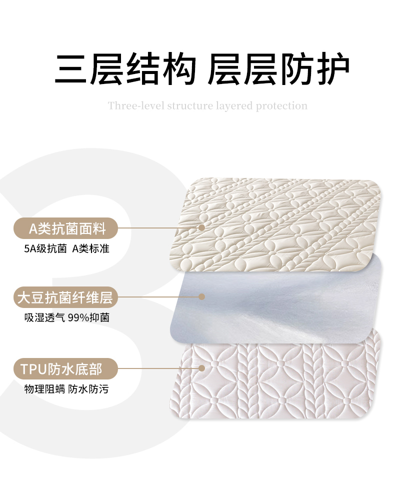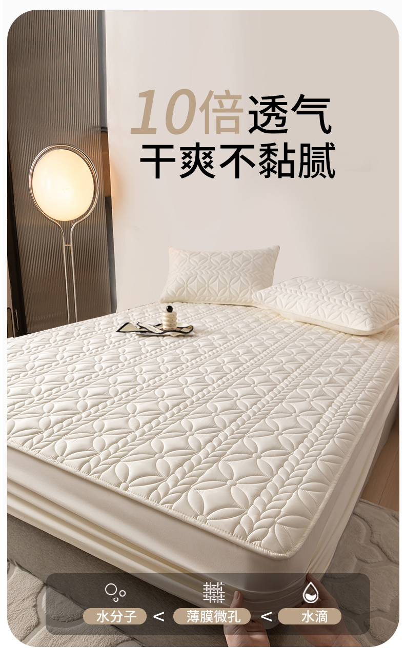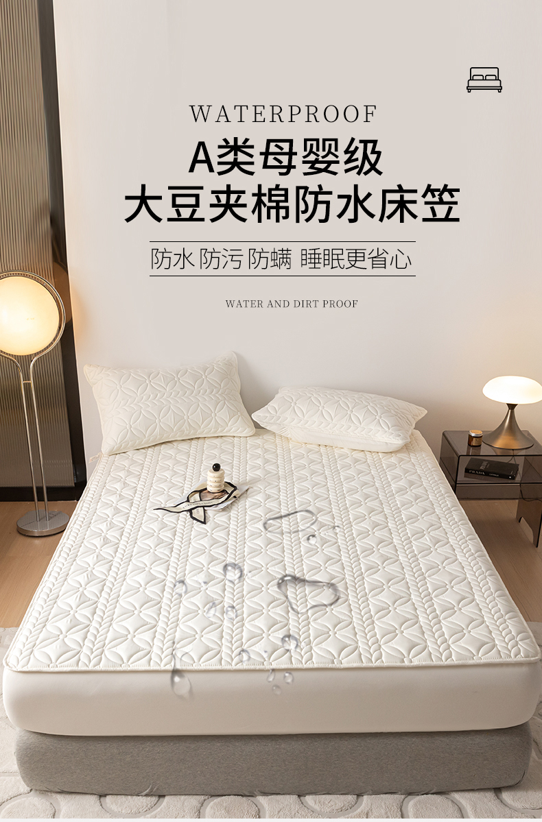 鑫钰 2025新款防水夹棉防水床笠-花穗 花穗-月光白