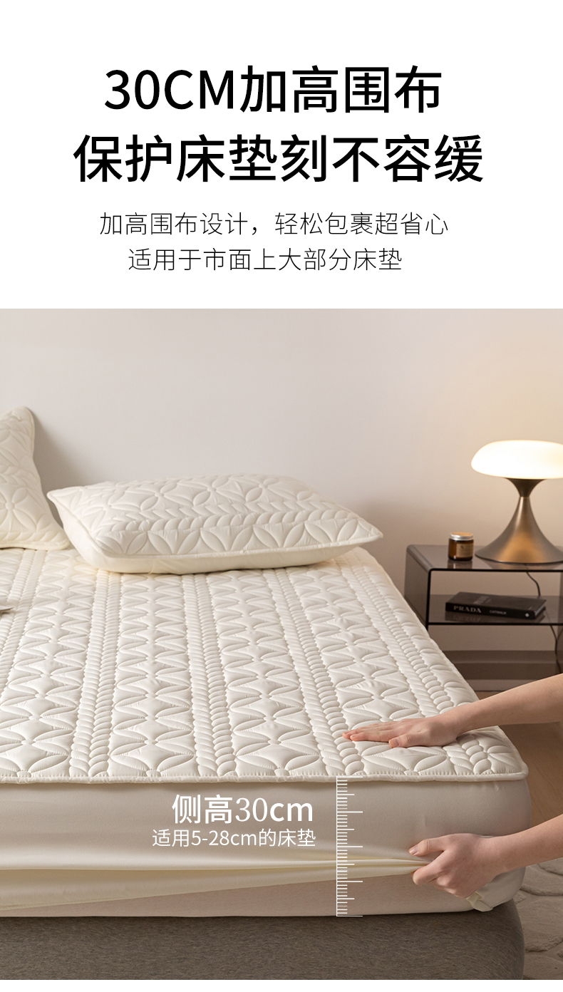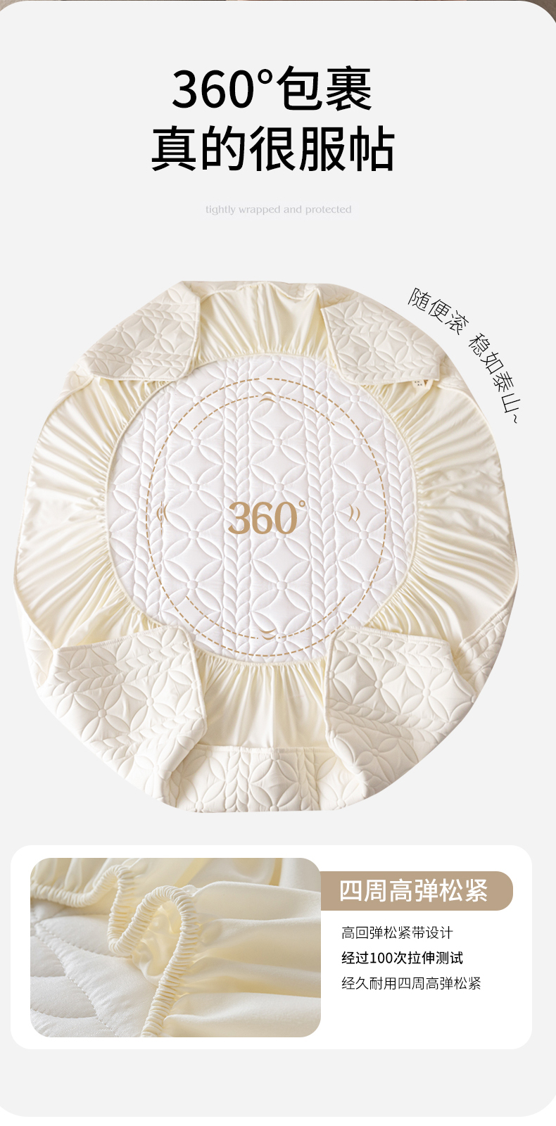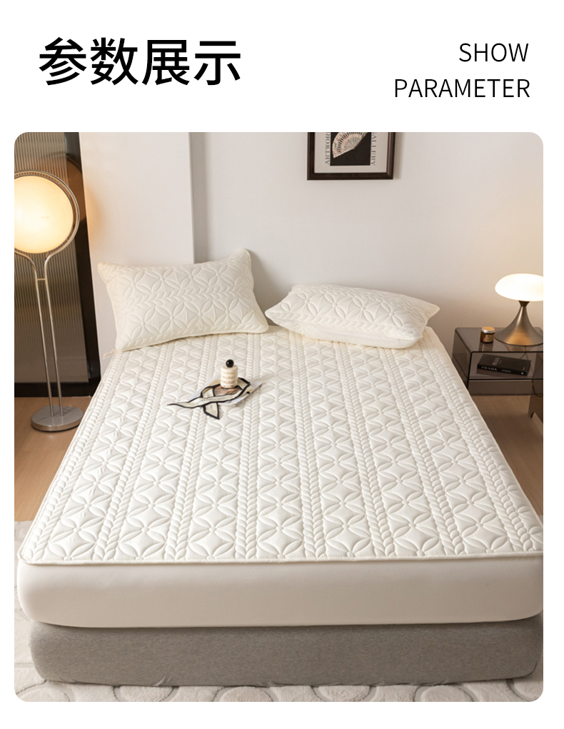 • 91家纺网 家纺一手货源 找家纺 鑫钰 2025新款防水夹棉防水床笠-花穗 花穗-月光白