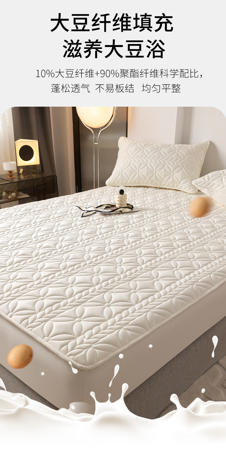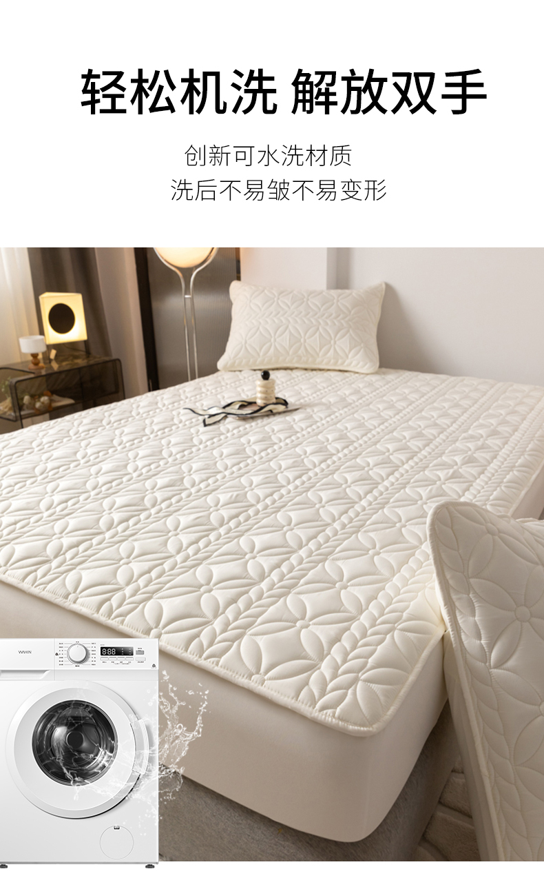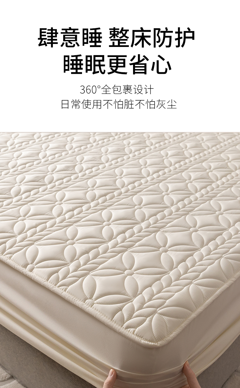 • 91家纺网 家纺一手货源 找家纺 鑫钰 2025新款防水夹棉防水床笠-花穗 花穗-月光白