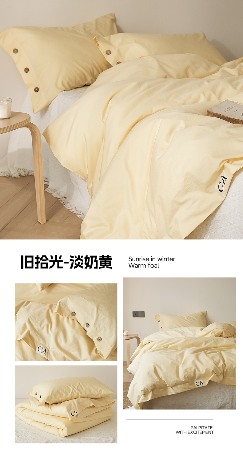 • 91家纺网 家纺一手货源 找家纺 EH家居 2025新款旧拾光系列全棉水洗棉单品被套 旧拾光-淡奶黄