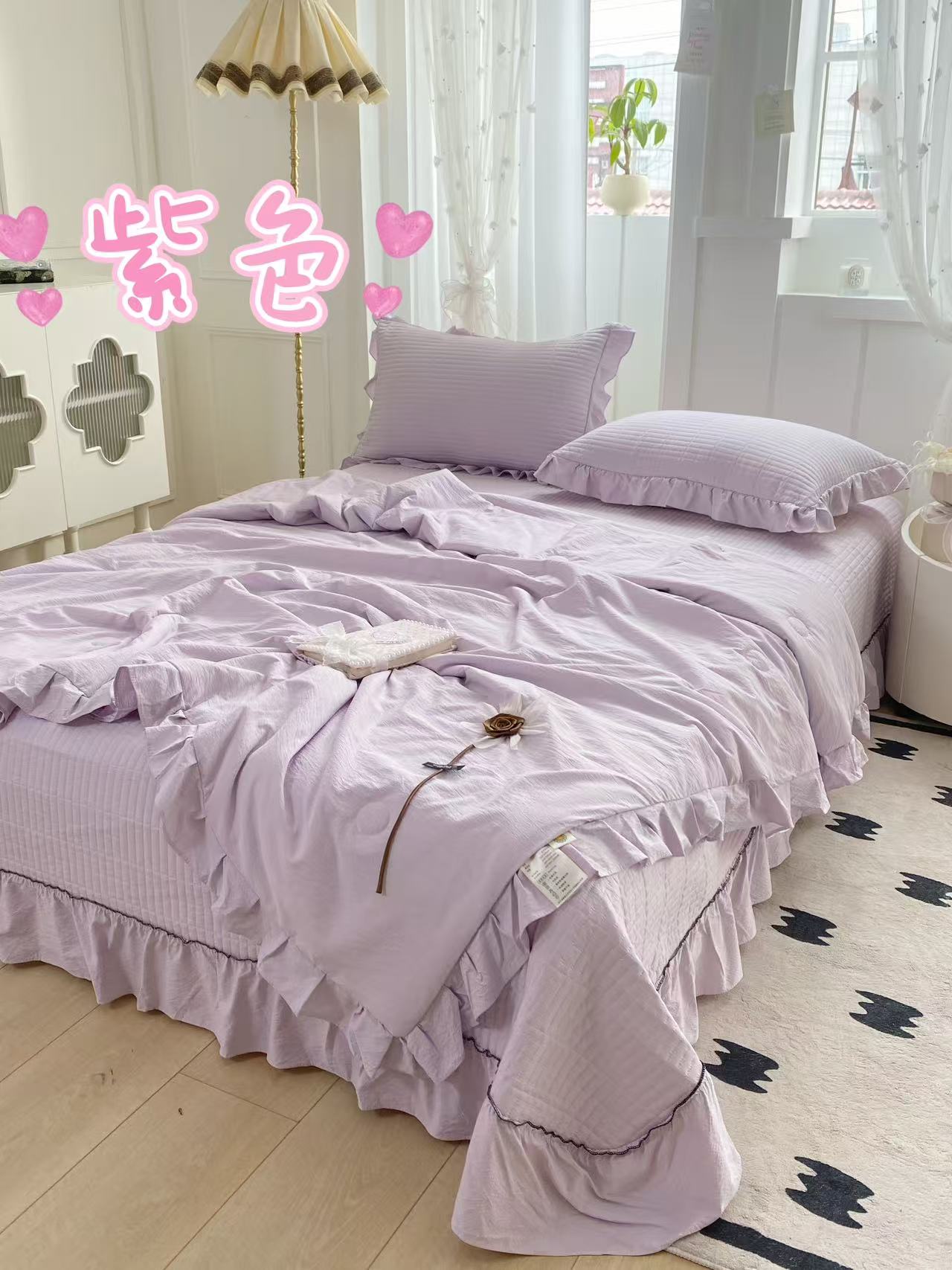 (总)2025新款珍珠棉床盖四件套,蓝色,灰色,粉色,紫色,绿色
