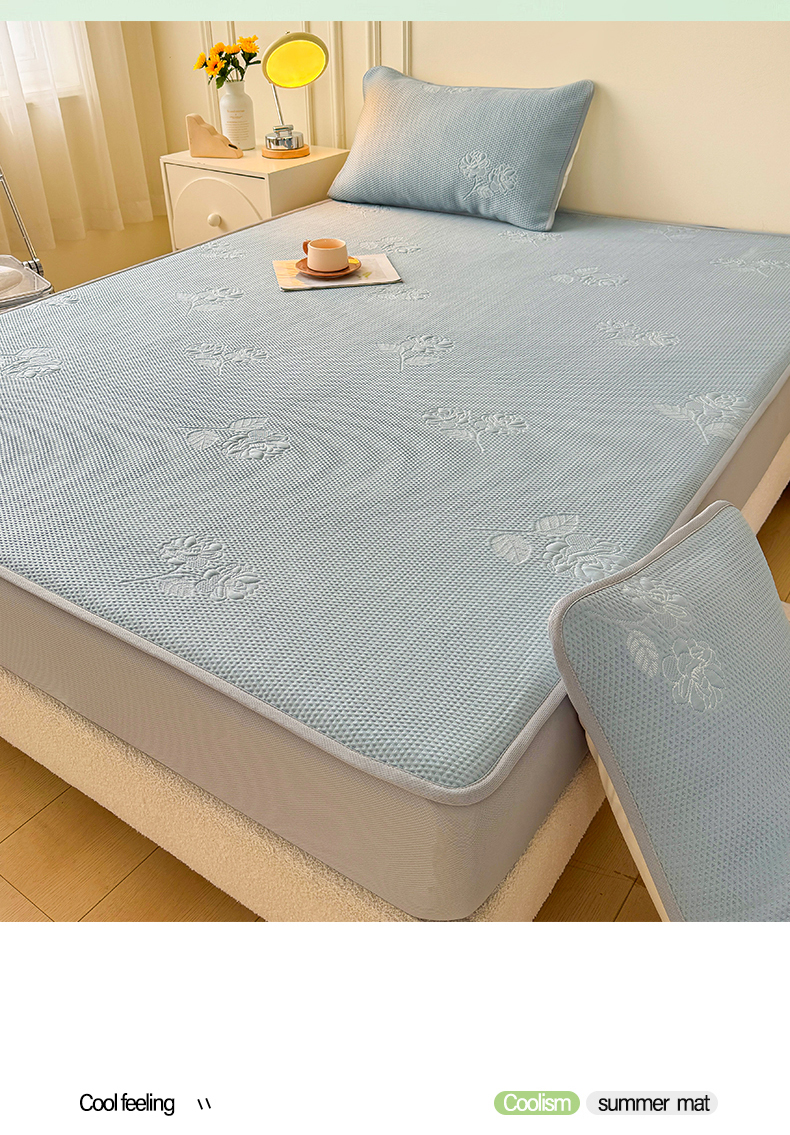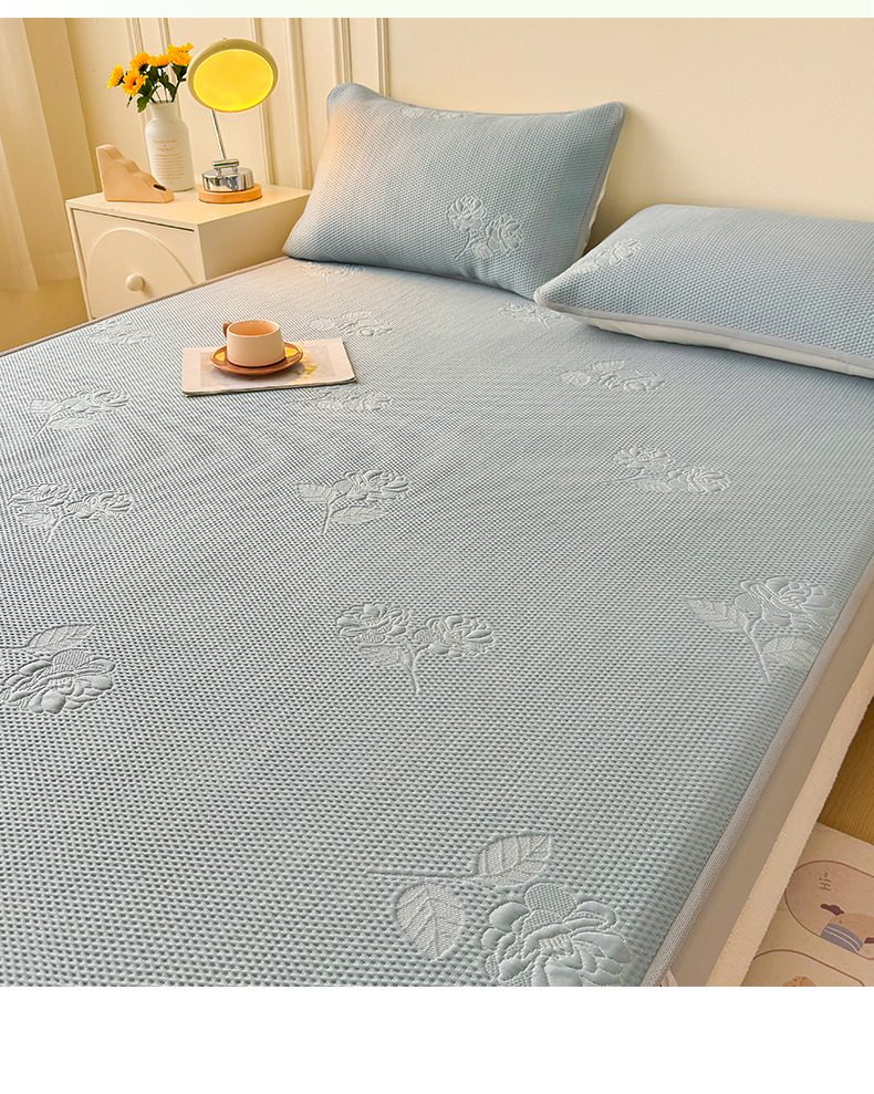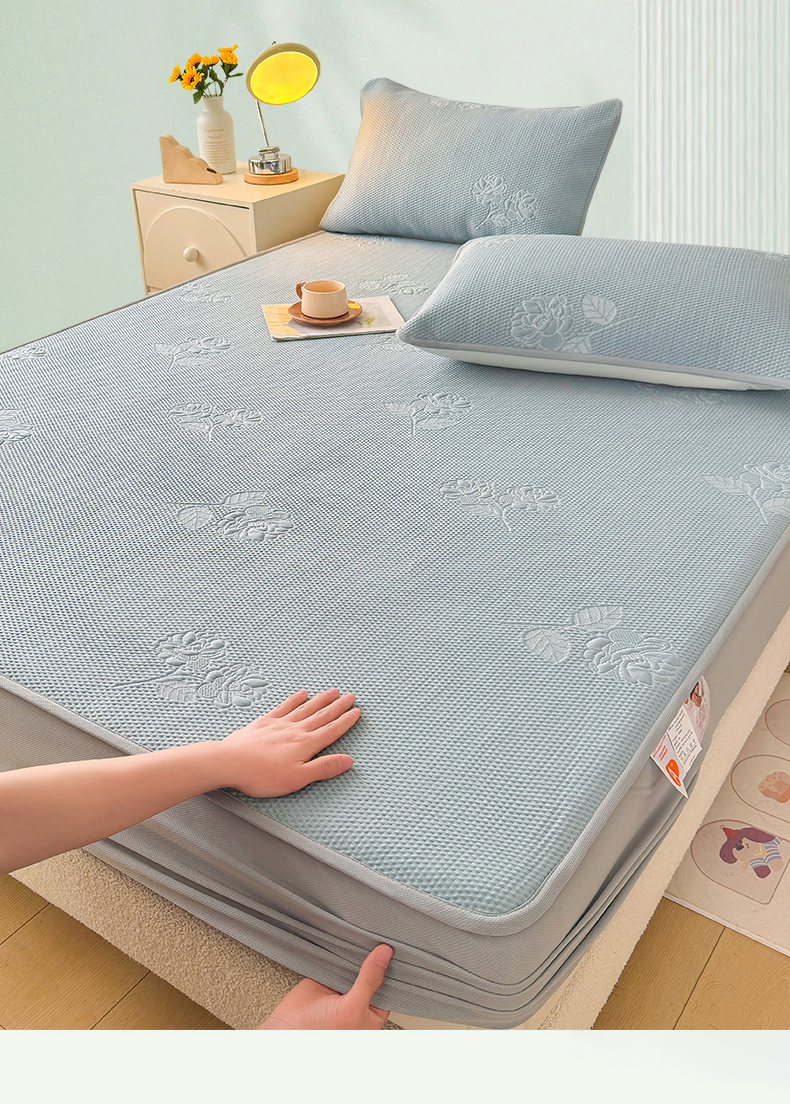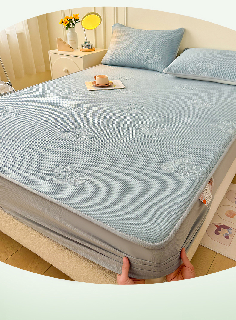 恒爱 2025新款冰丝牡丹花床笠 蓝灰