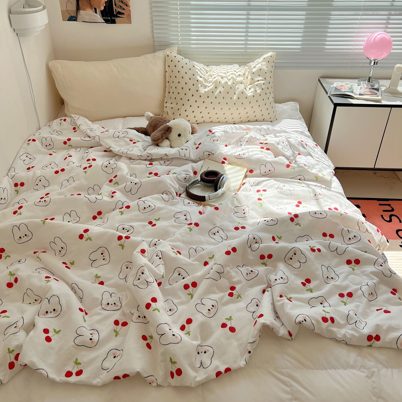 繁花家居 2025新款AA版水洗棉超软夏被直播热款 樱桃兔