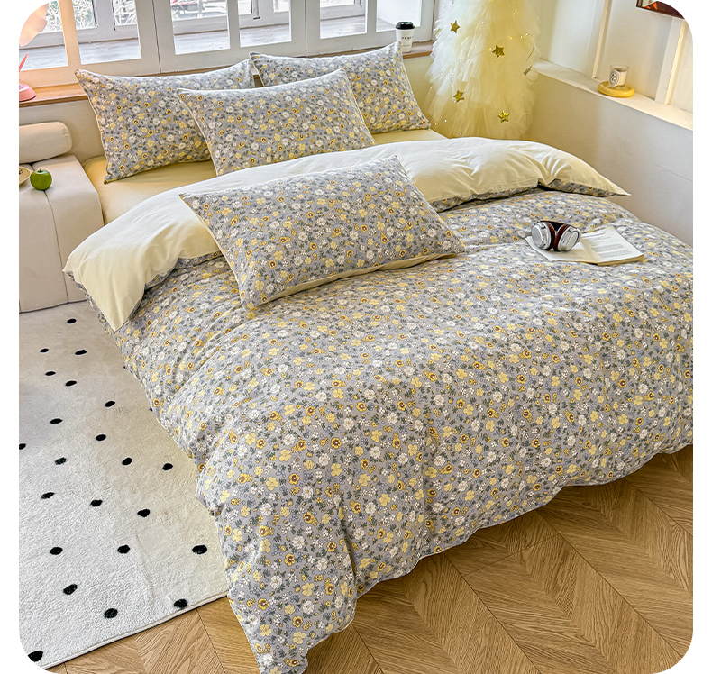 商品名称:芊寻家居 2025新款13372全棉印花系列四件套 暮云 灰