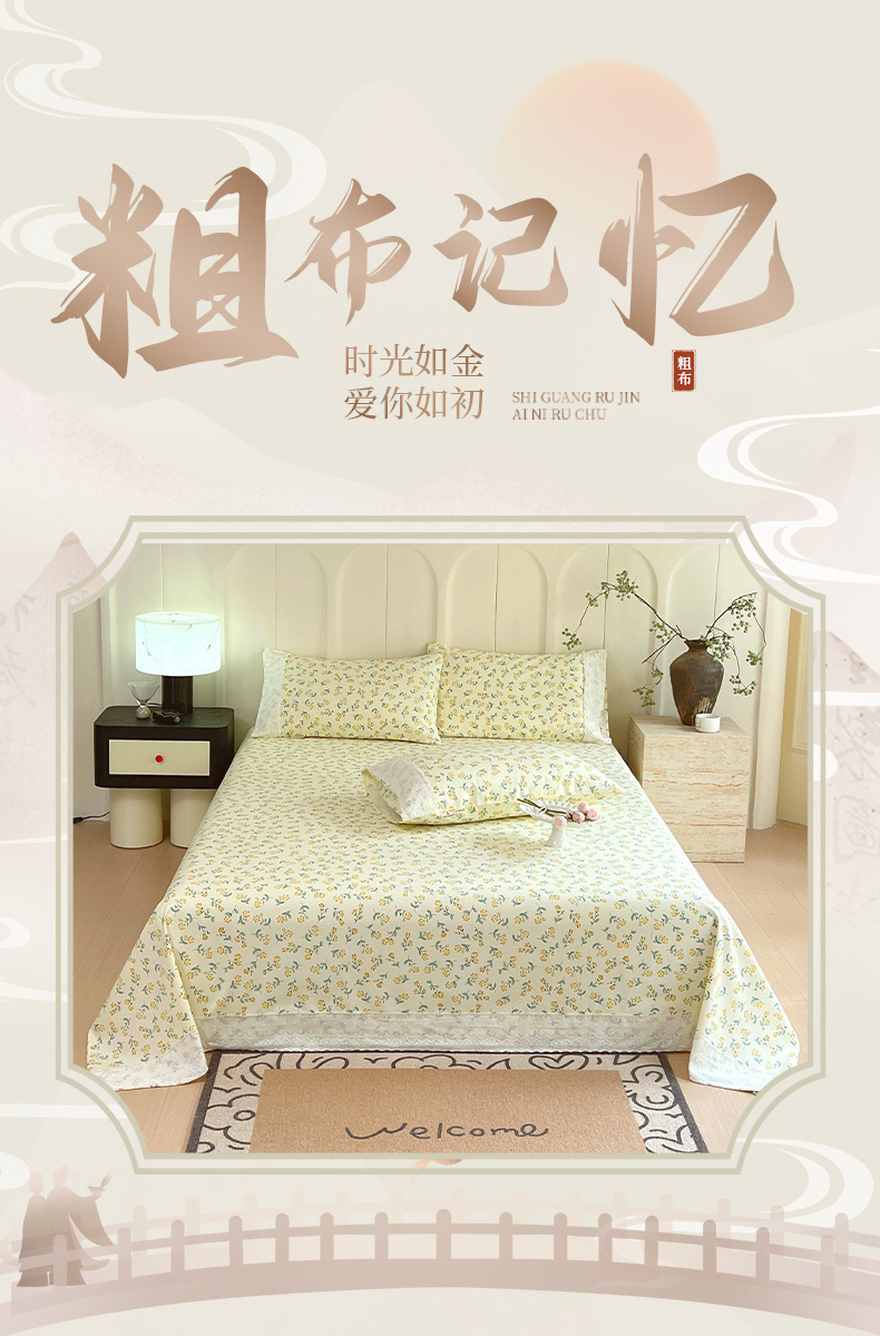 商品名称:春皖家纺 2025春夏新款老粗布花边款凉席席子单床单 床单单件 花边-伊兰