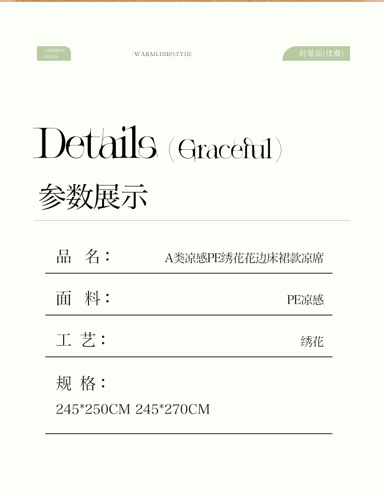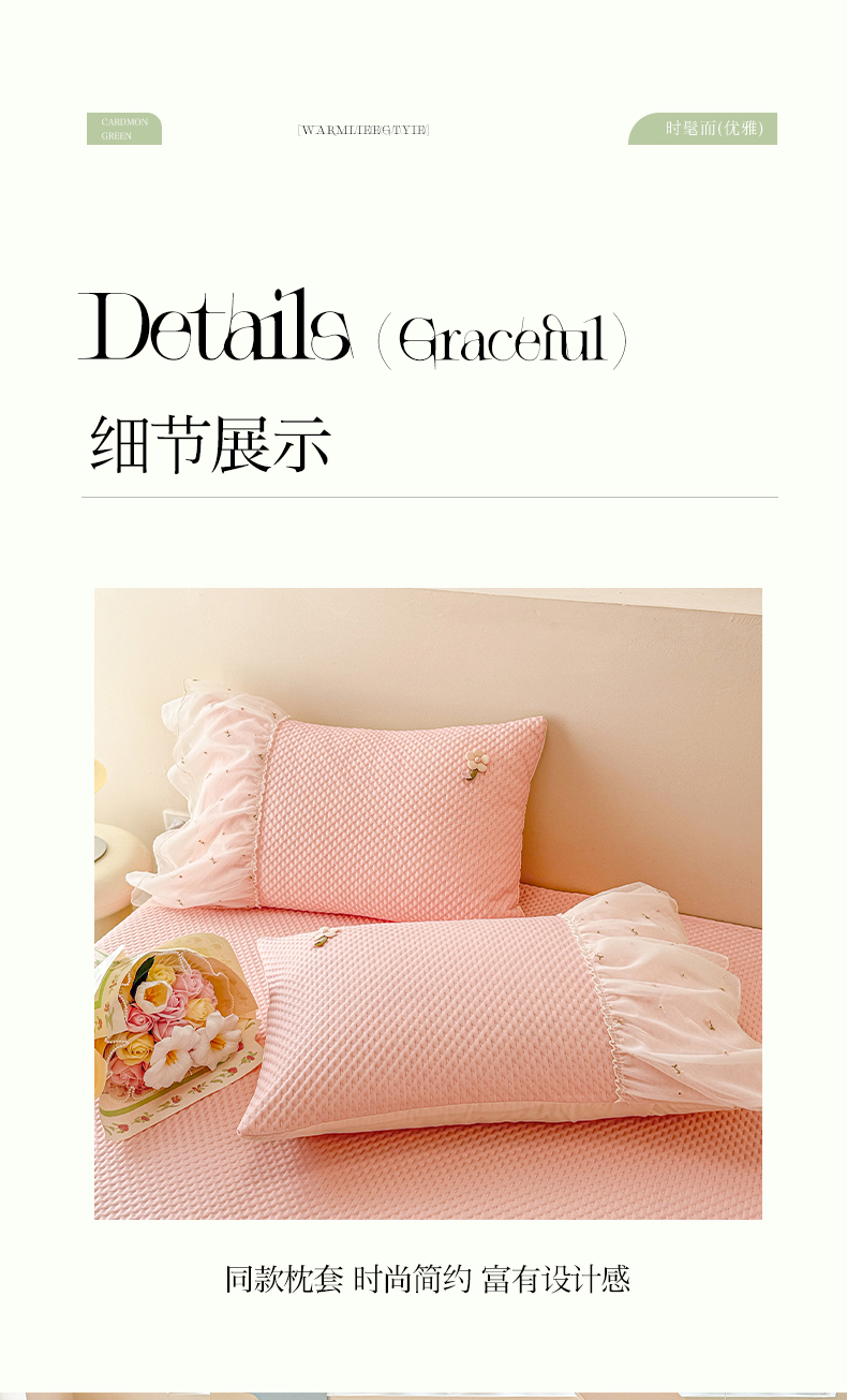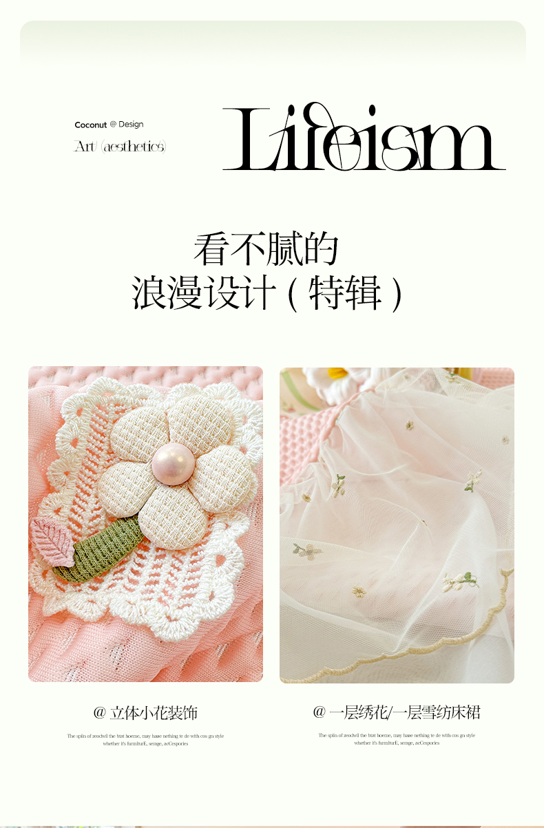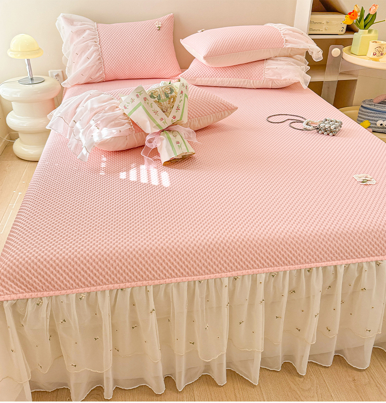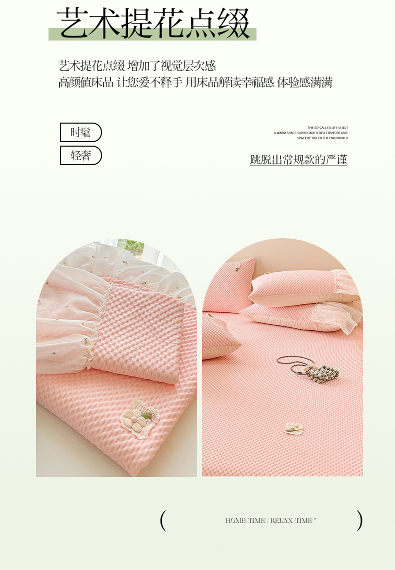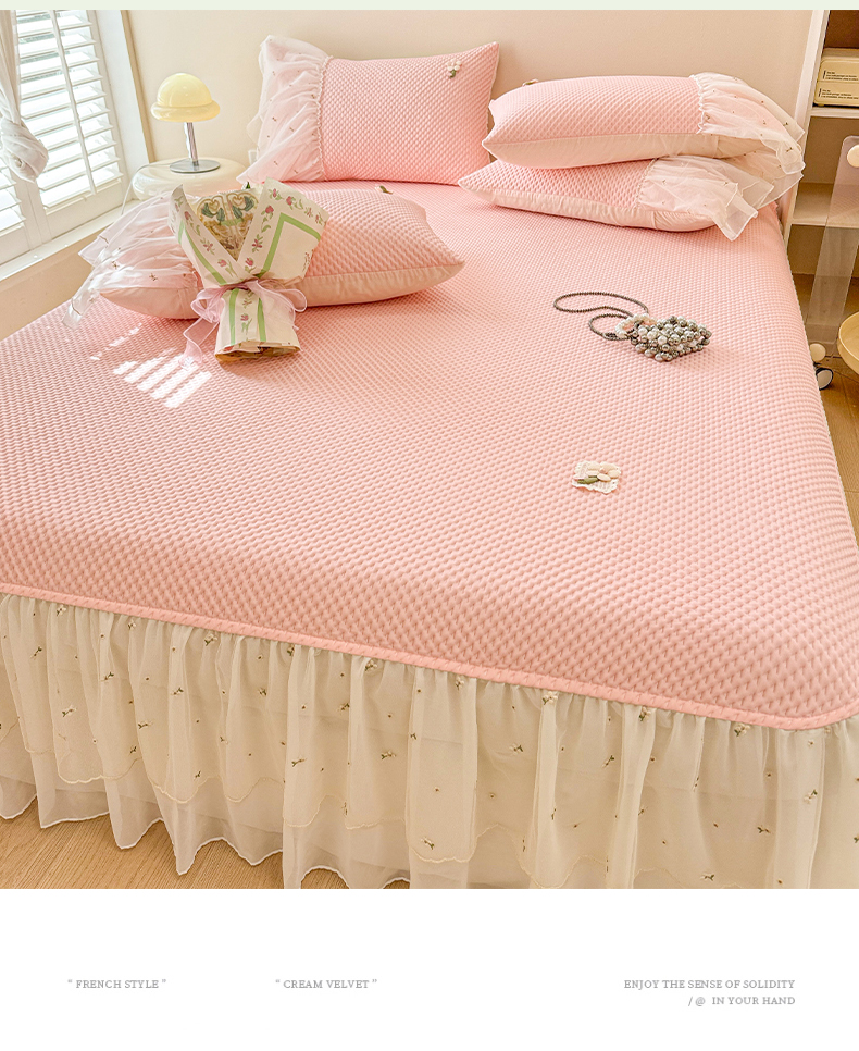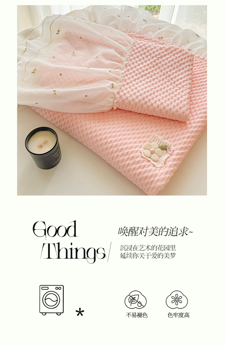 商品名称:蓝邻家纺 2025春夏新款PE提花雪纺+绣花花边凉席席子 夏花-粉