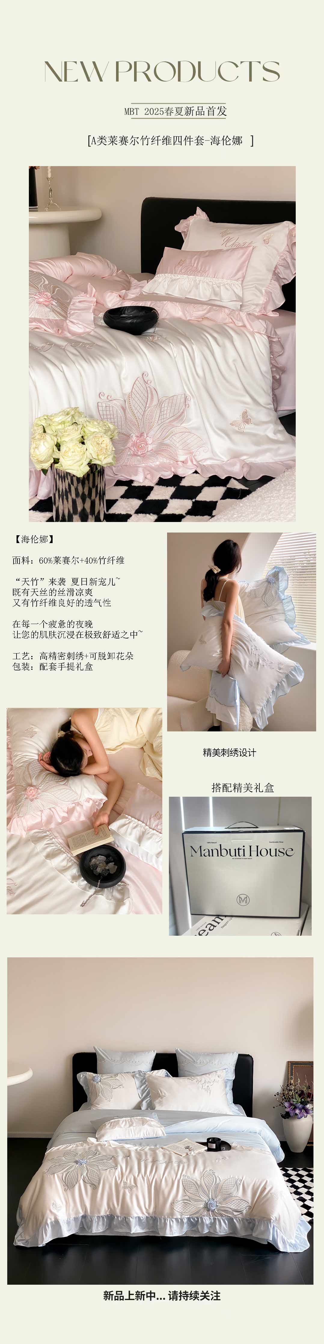 (总)曼布缇 2025新款A类莱赛尔竹纤维绣花四件套-海伦娜 券后368起 会员减20