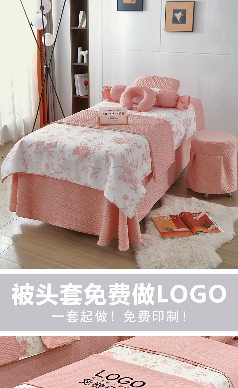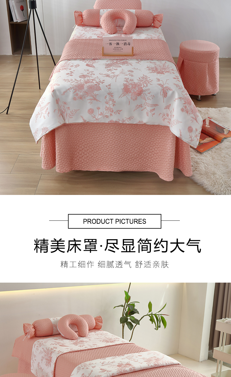 琪宝阁 2025新款美容床罩四件套美容院专用套件-小风车系列 小风车-粉色