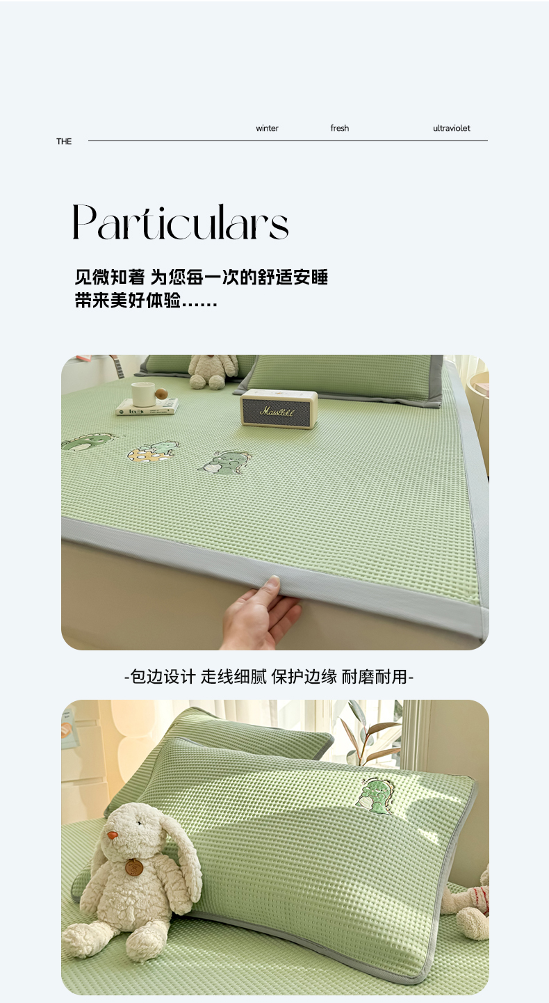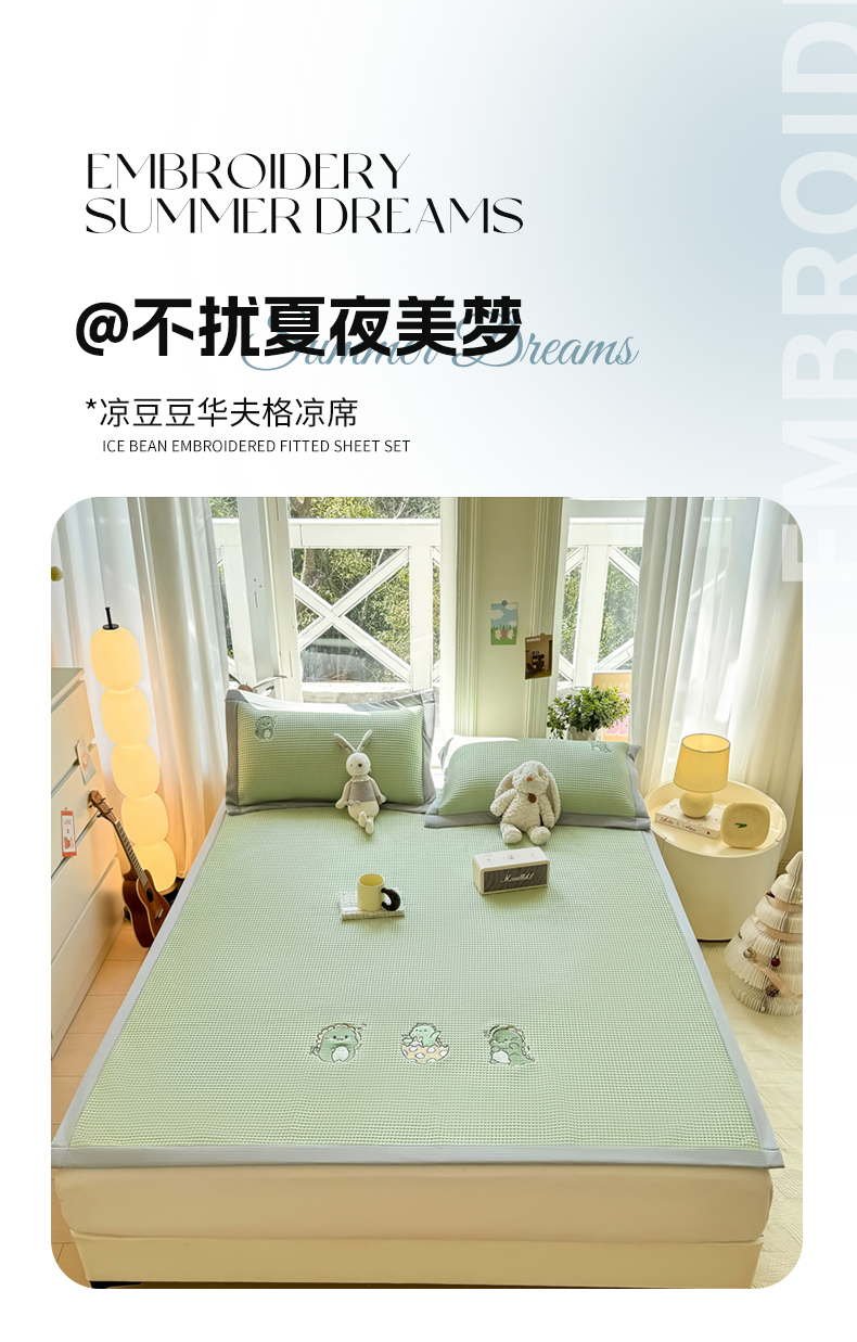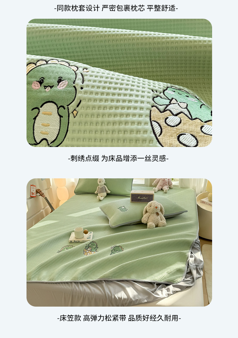当前位置: 91家纺网 > 商品网购 > 床上用品 > 凉席 > 其他凉席 > 萌飞 2025新款乙纶PE中分子华夫格凉豆豆凉席 中分子PE凉豆豆凉席-调皮小恐龙-果绿【平铺款】