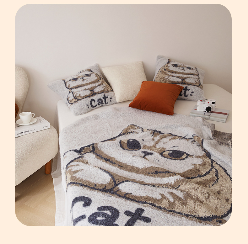 暖绵绵2025新款半边绒涤纶混纺毯子抱枕套 卡特