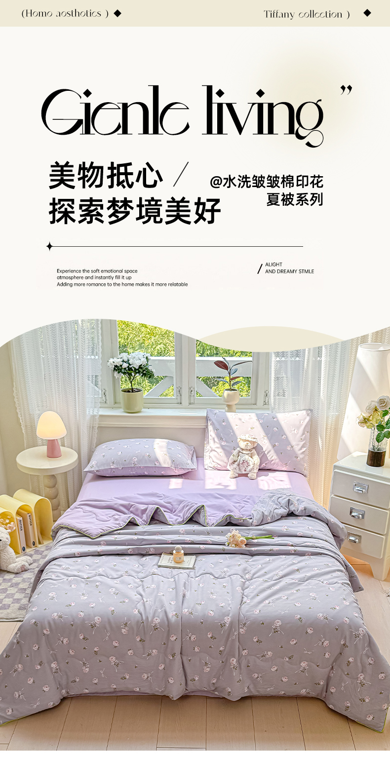 (总)丝芙妮家居(原乐视家纺) 2024新款A类色织水洗棉新疆棉花夏被,可颂咖,洛川棕,梦田-绿,暮落-绿,暮落-米黄,暮落-杏,暮落-粉