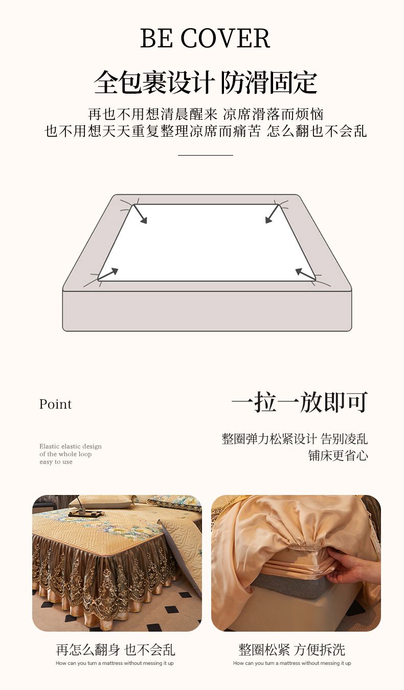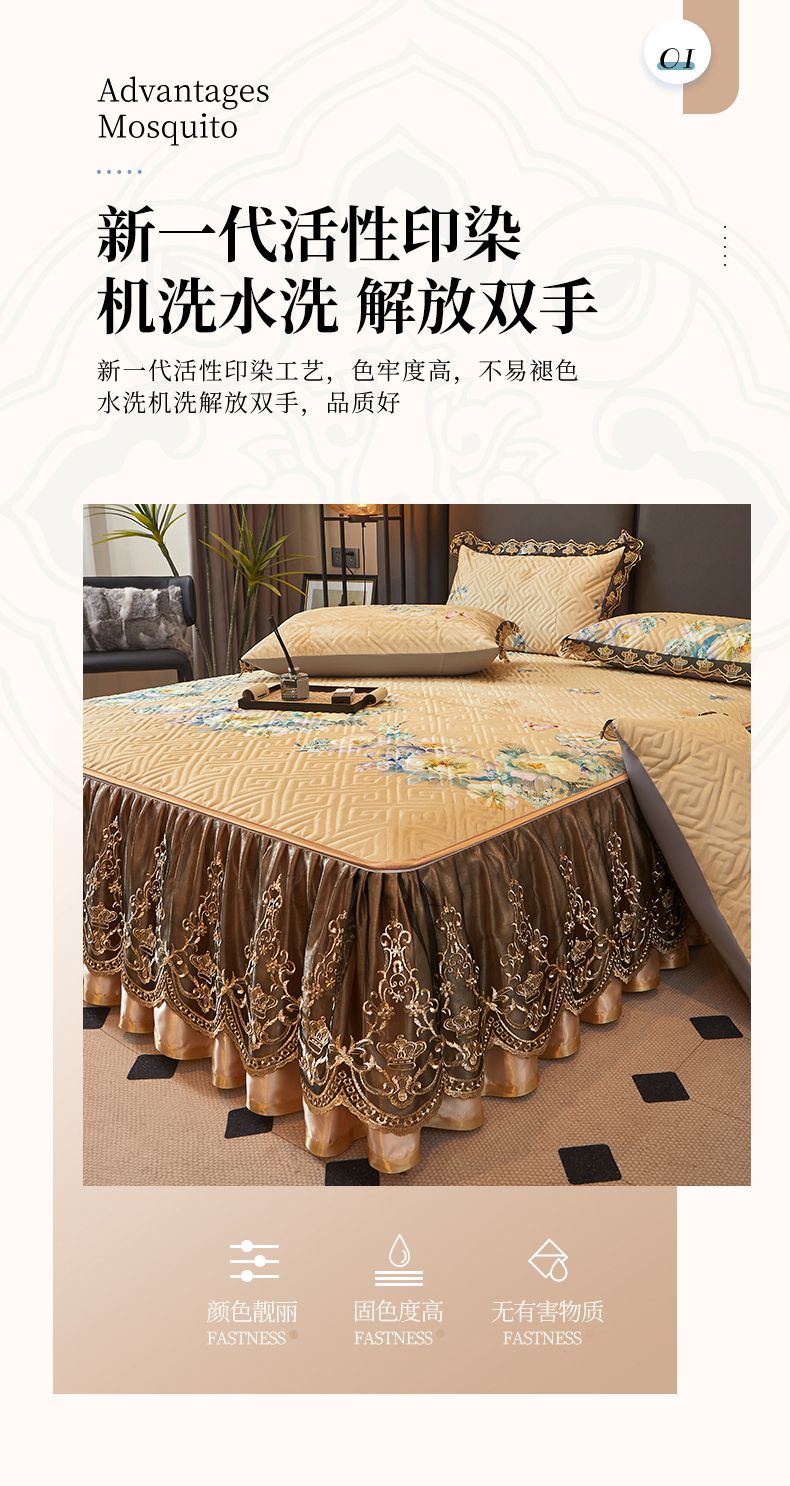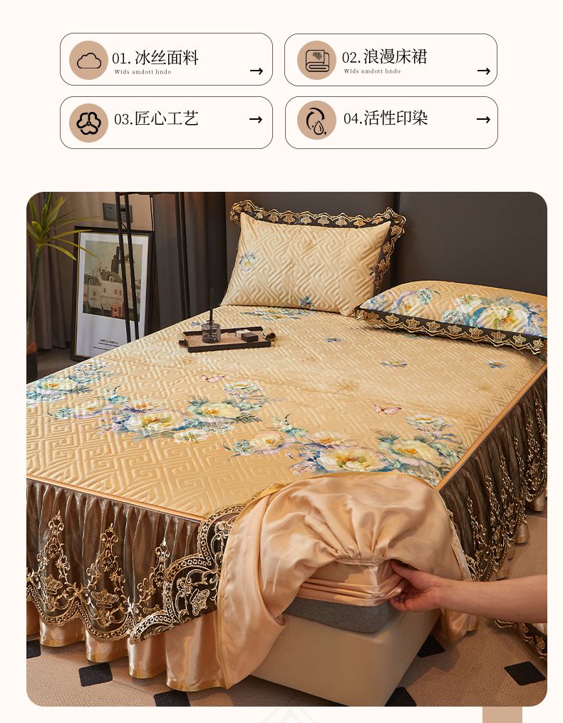 商品名称:罗艺轩 2025新款可拆卸床笠式床裙印花冰丝席 芭提雅