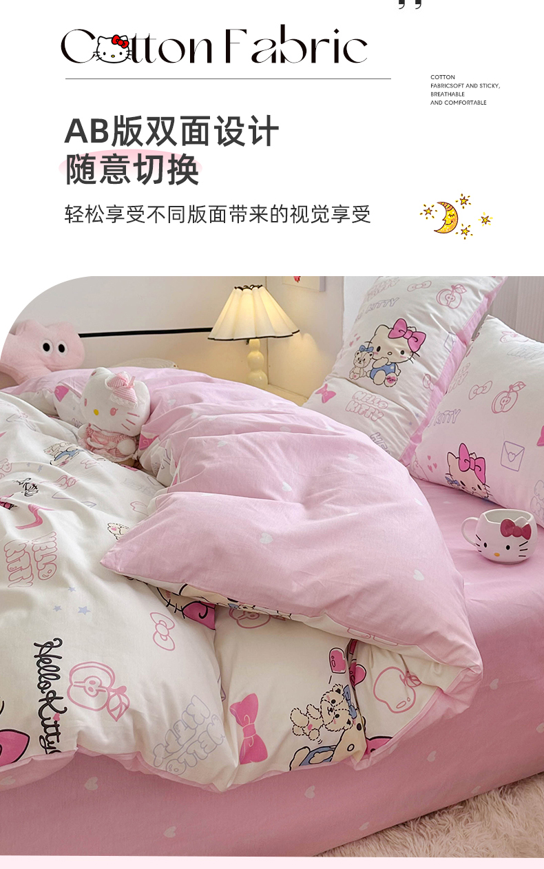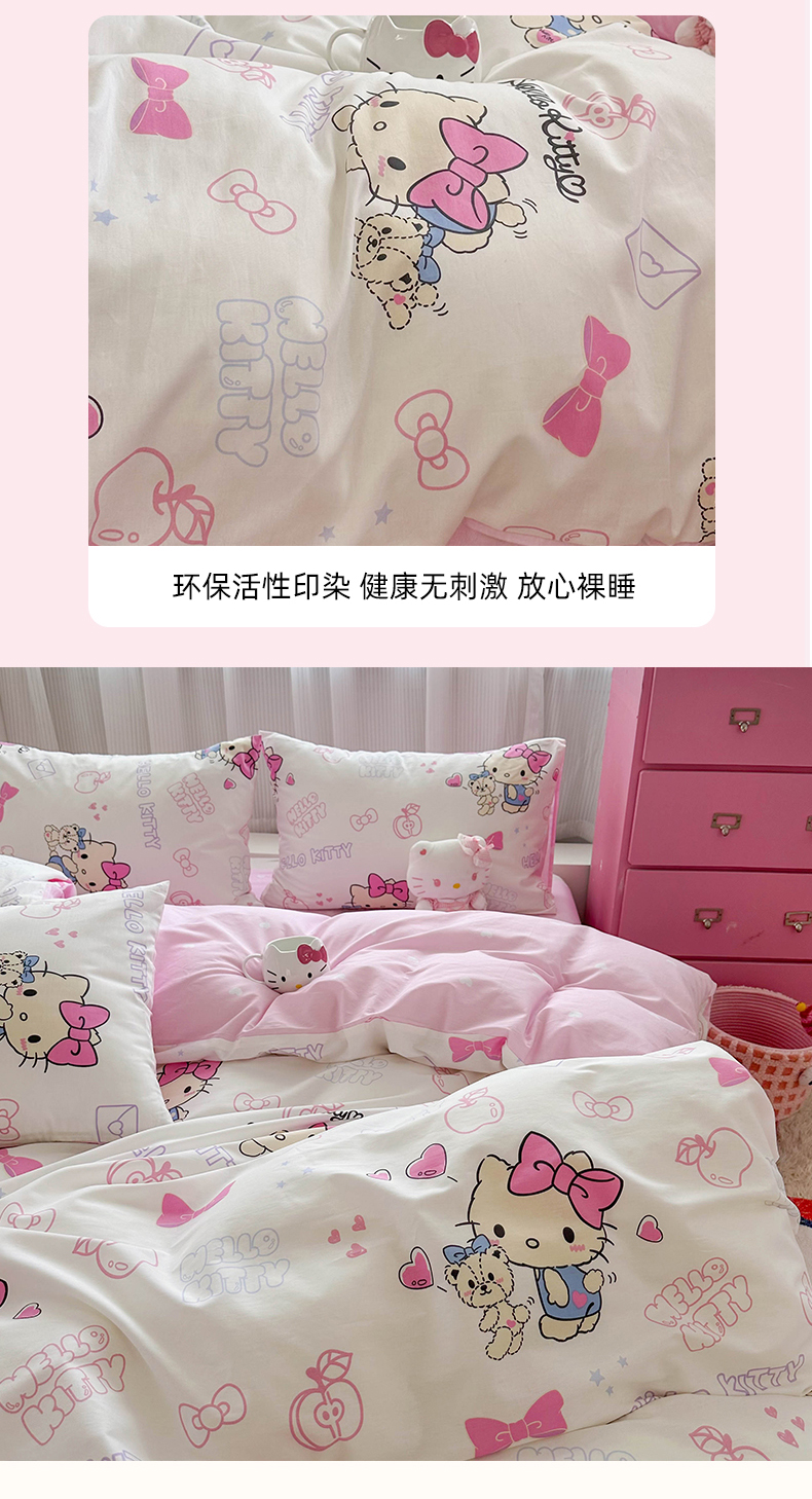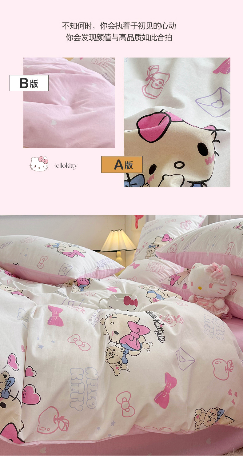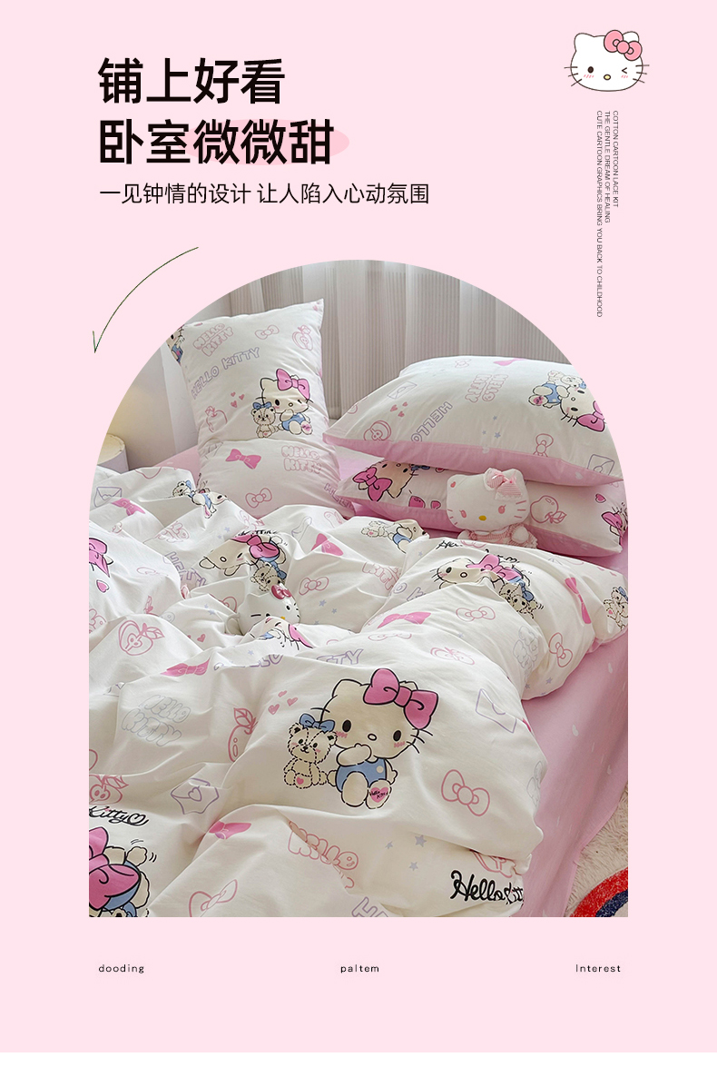 当前位置: 91家纺网 > 商品网购 > 床品套件 > 四件套 > 全棉普通四件套 > 玉元坊 2025年5月新品三丽鸥全棉床单纯棉床裙床笠三四件套简约基础款式-凯蒂猫简约款式 凯蒂小熊【简约款】