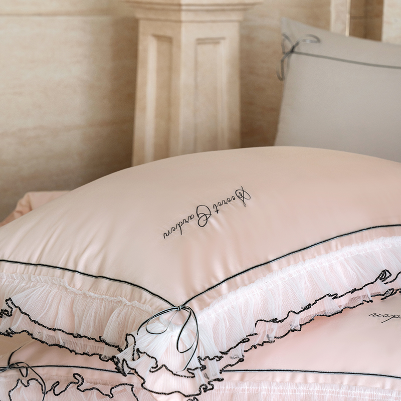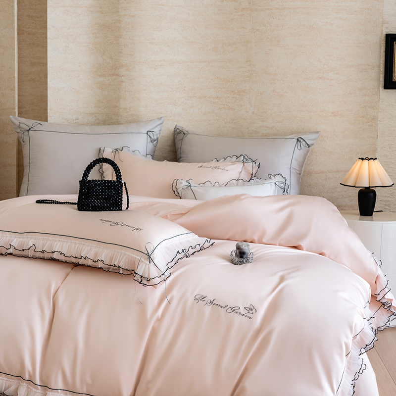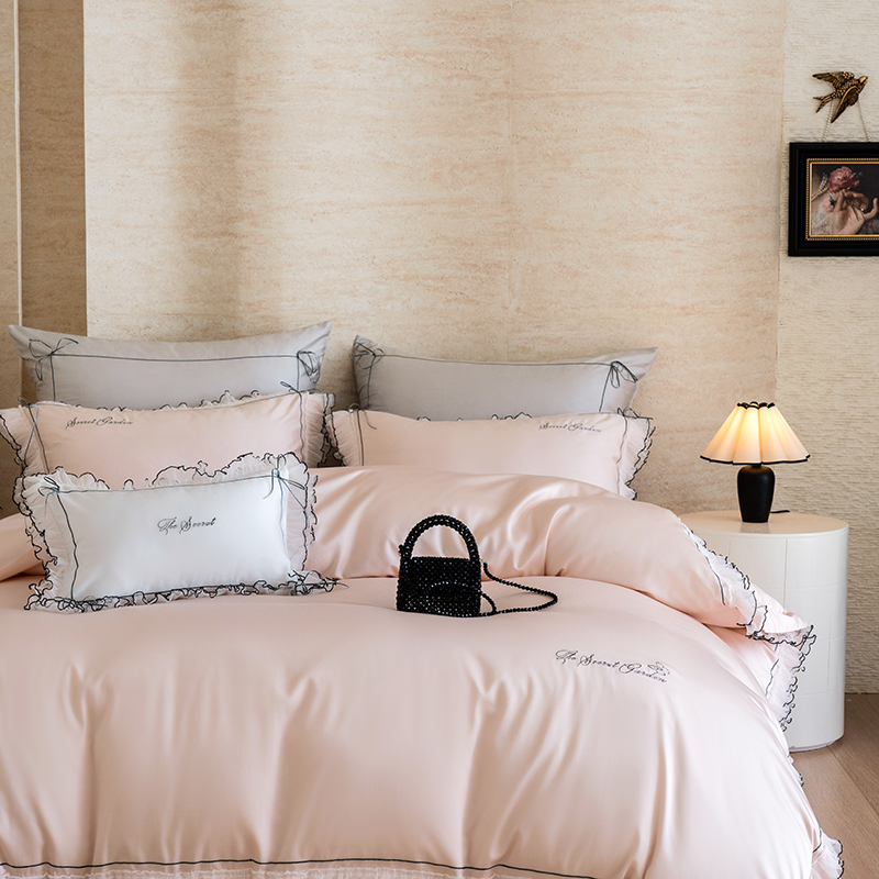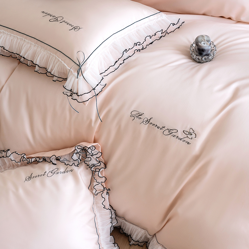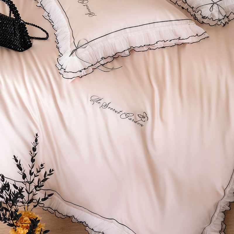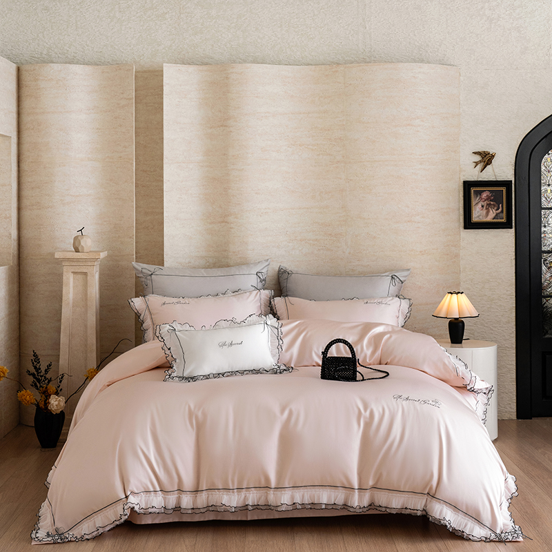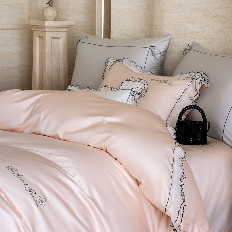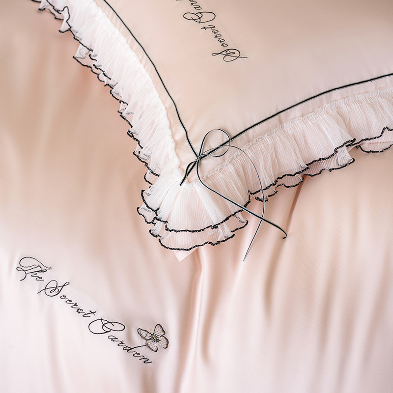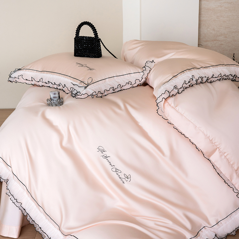 (总)2025新款AB版天丝棉色布淑女风四件套,蝶舞绮梦 粉