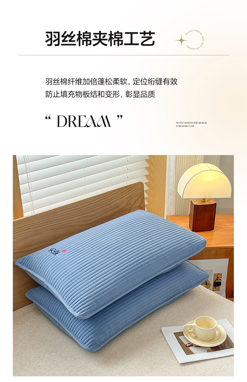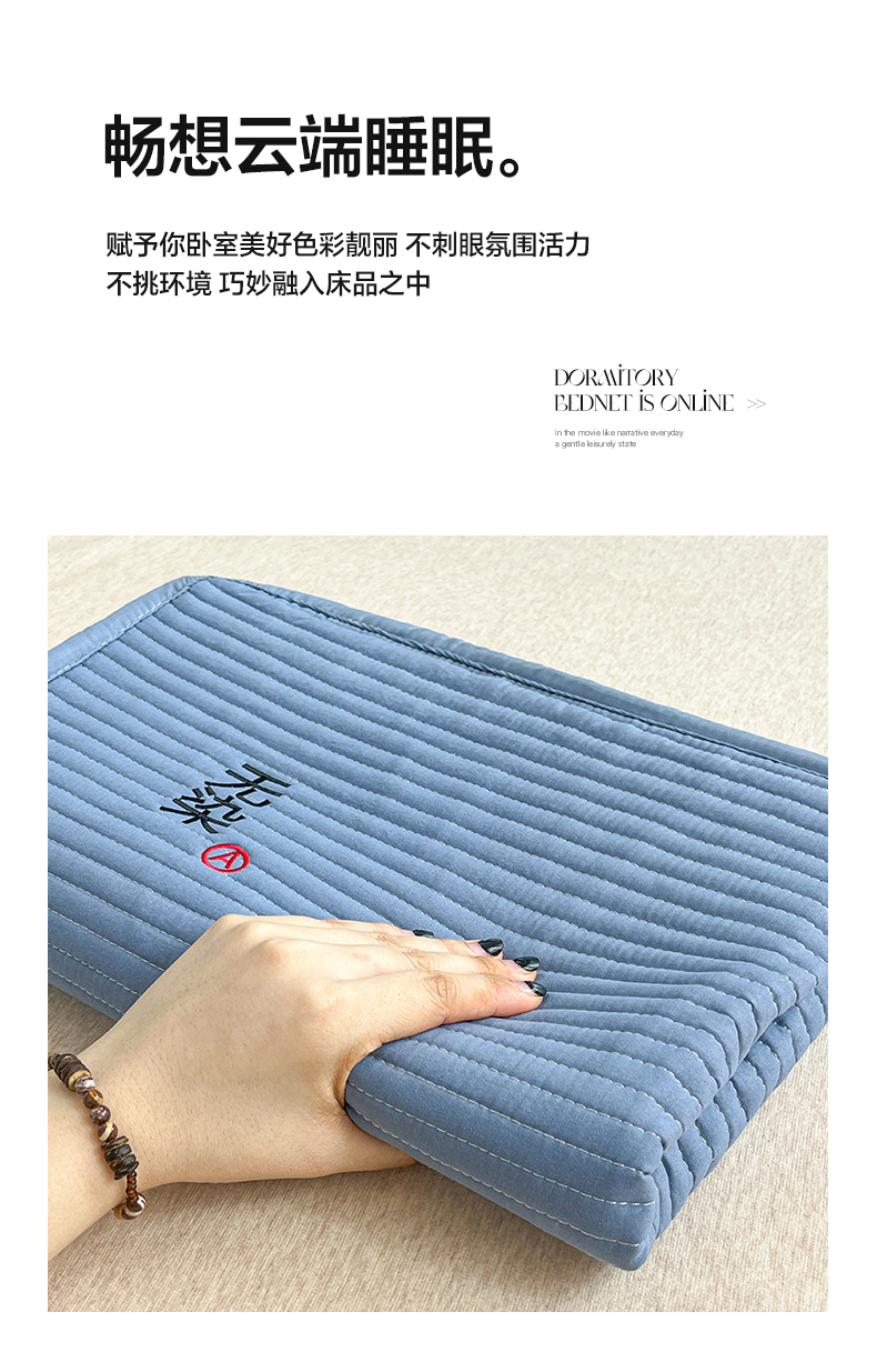 商品名称:芙绣家纺 2025新款A类防水绣花夹棉枕套 蓝色