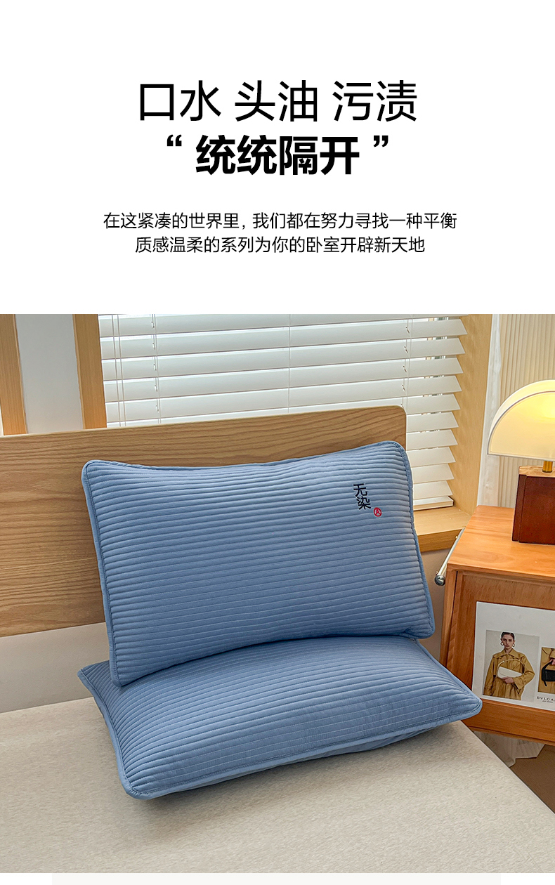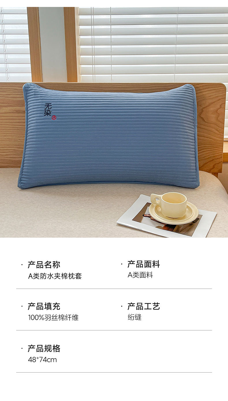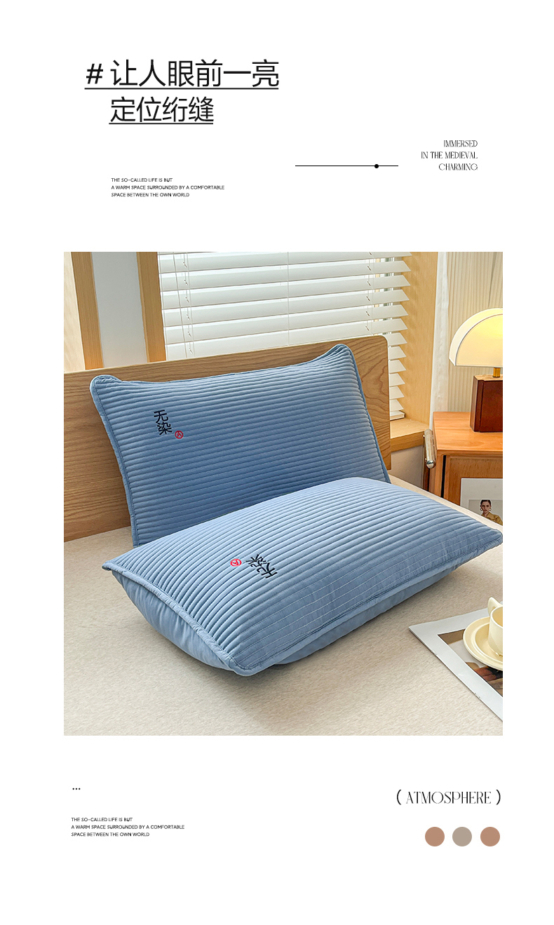(总)芙绣家纺 2025新款A类防水绣花夹棉枕套,蓝色,米色,浅灰,浅绿