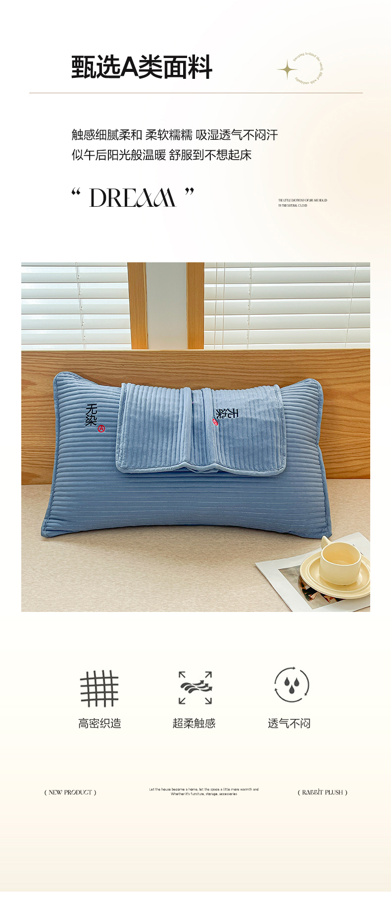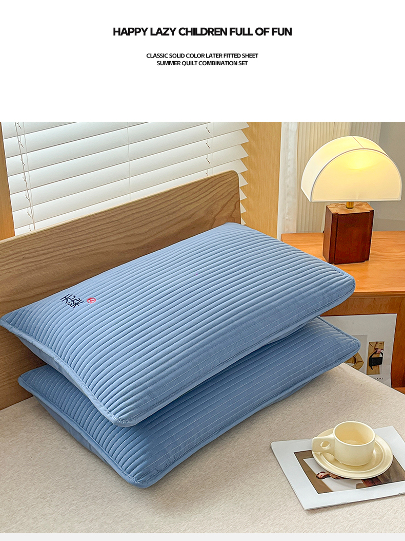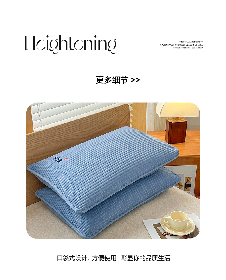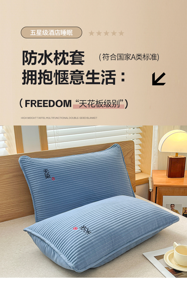 (总)芙绣家纺 2025新款A类防水绣花夹棉枕套,蓝色,米色,浅灰,浅绿