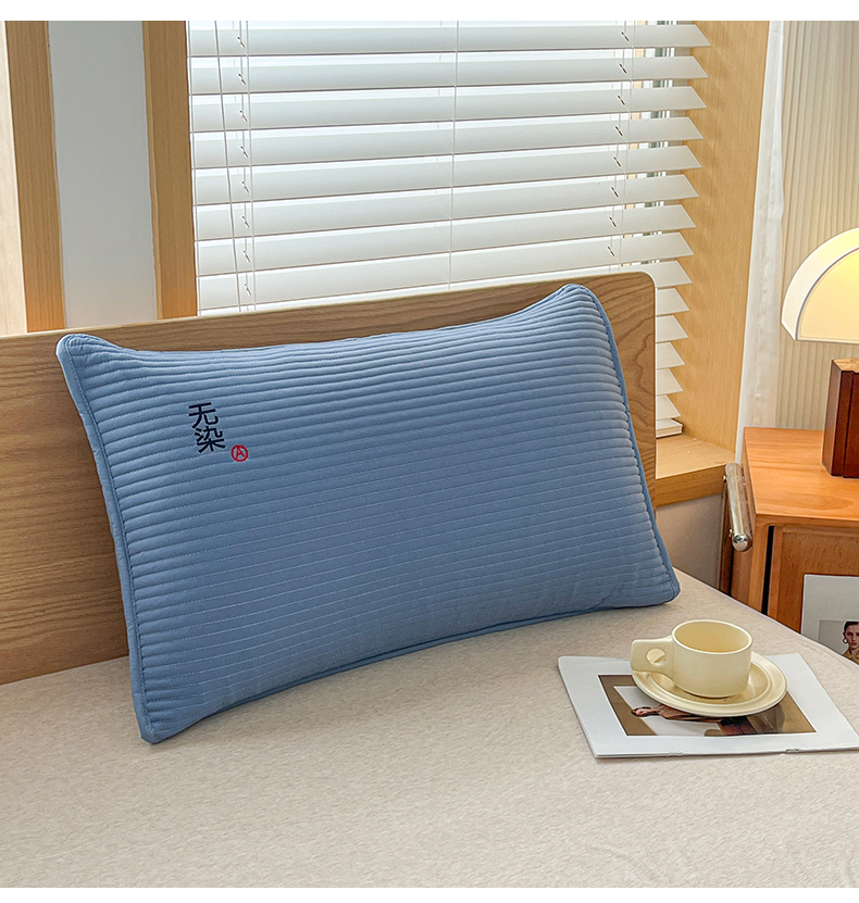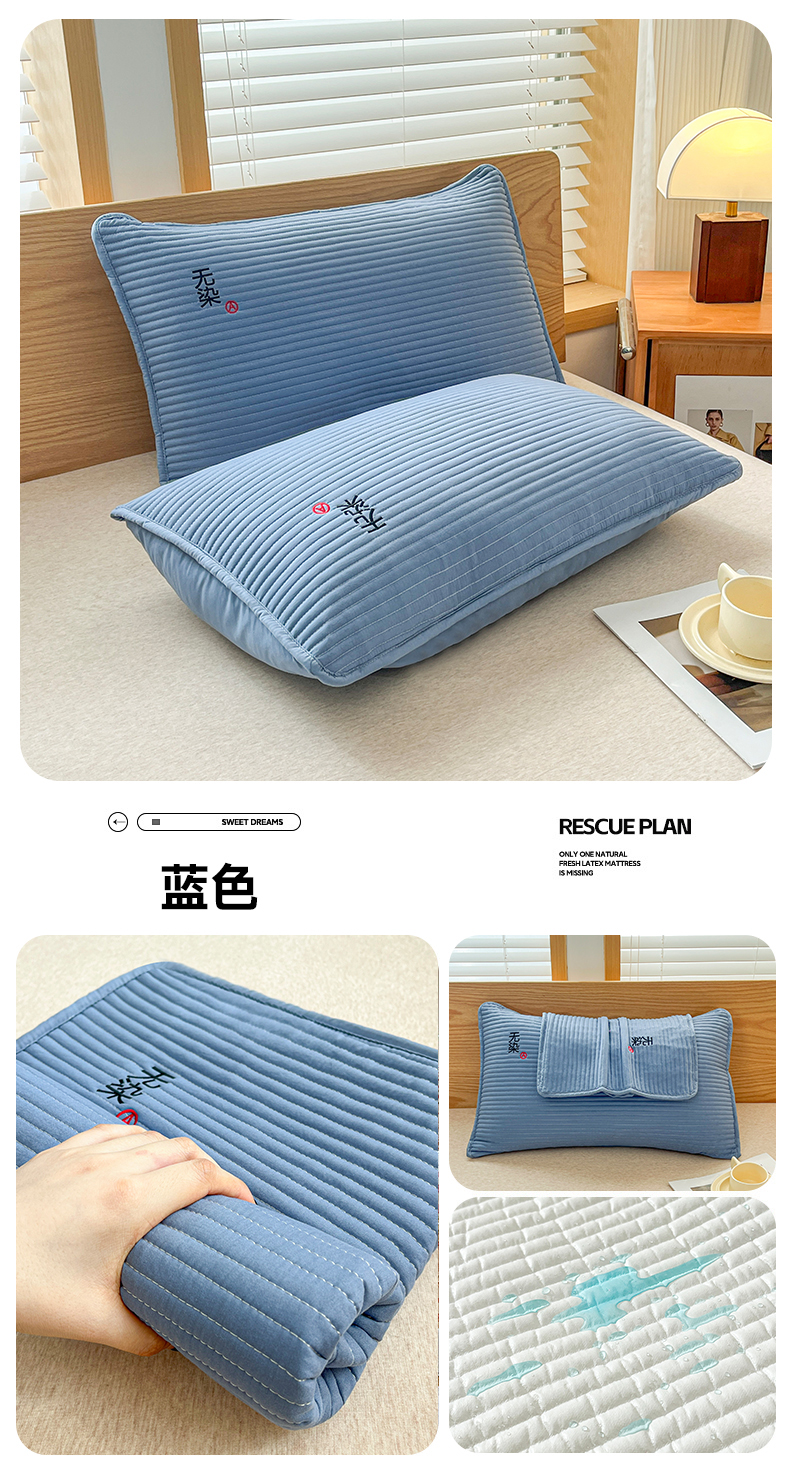 芙绣家纺 2025新款A类防水绣花夹棉枕套 蓝色