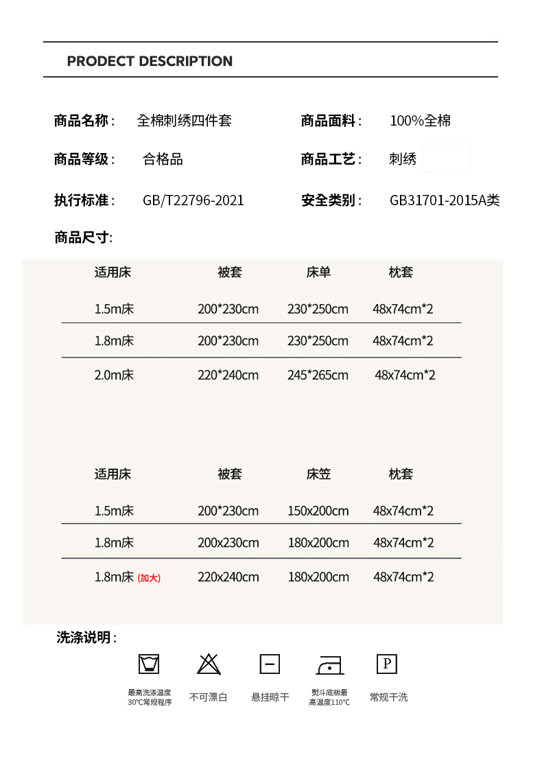 2.2x2.4m单被套 | ¥80.00 |