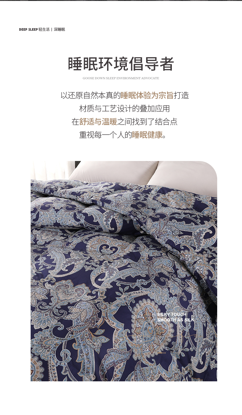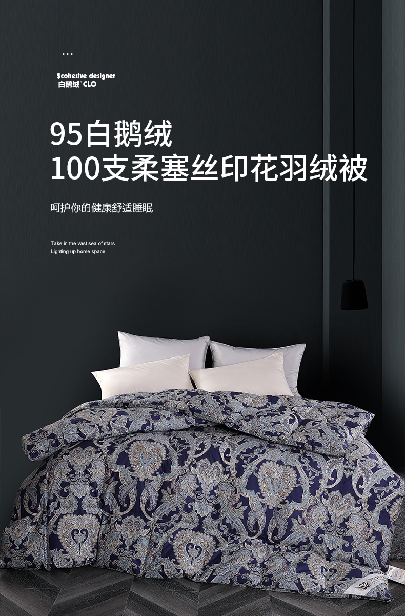 • 91家纺网 家纺一手货源 找家纺 呆头鹅羽绒工厂店 2025新款100支柔塞丝印花羽绒被 白鹅绒鸭绒被子被芯羽绒工厂店 黛尼雅宝兰