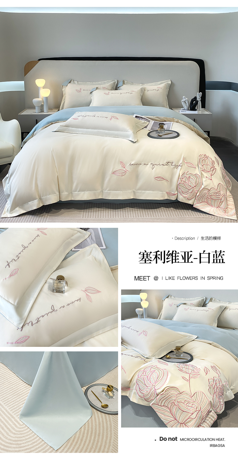 当前位置: 91家纺网 > 商品网购 > 床品套件 > 四件套 > 全棉普通四件套 > 青柚 2025新款A类亲肤棉刺绣四件套-塞利维亚 塞利维亚-白蓝