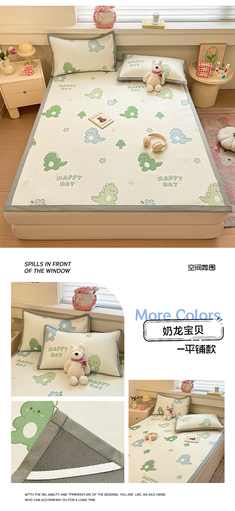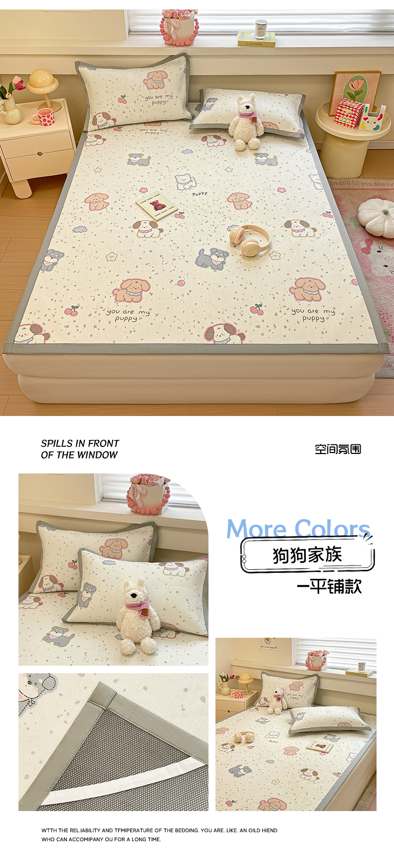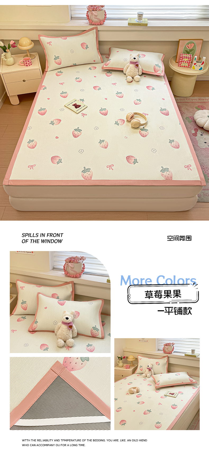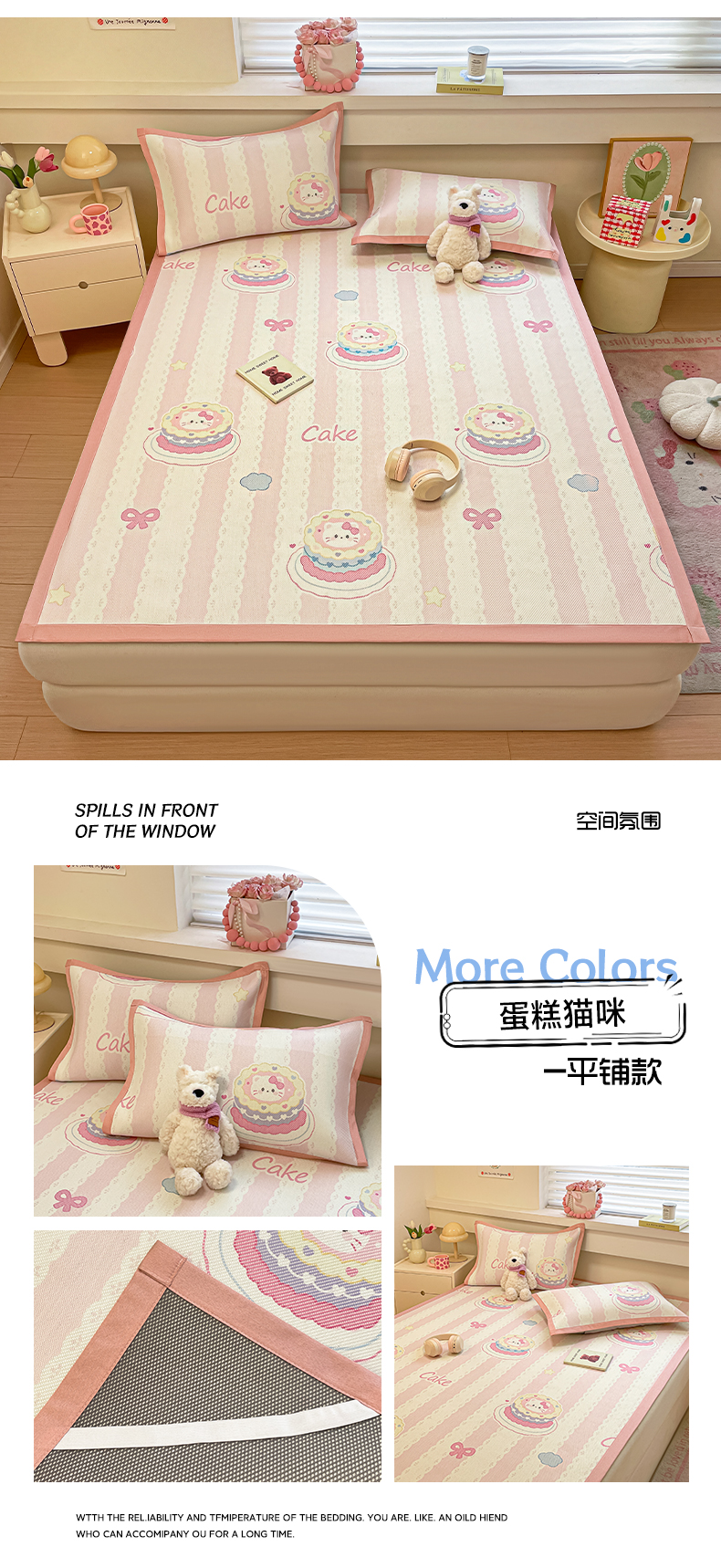 商品名称:逸尚阁 2025春夏新款数码印花冰藤席空调席三件套 诗集花市-平铺款