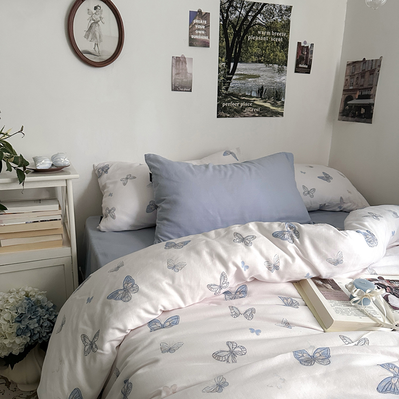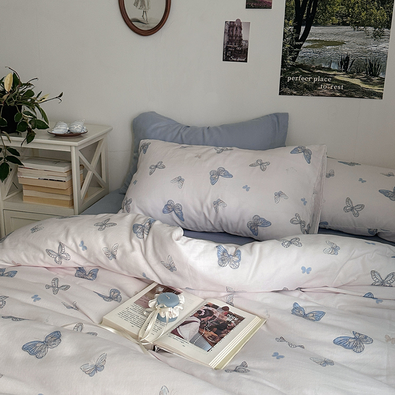 当前位置: 91家纺网 > 商品网购 > 床品套件 > 四件套 > 全棉普通四件套 > 柚可家居 2025新款全工艺双层纱数码印花全棉四件套实拍图 蝴蝶蓝