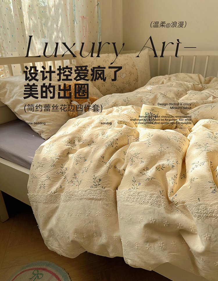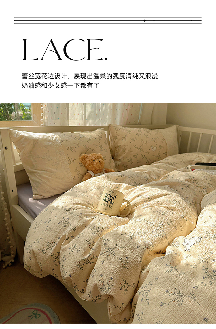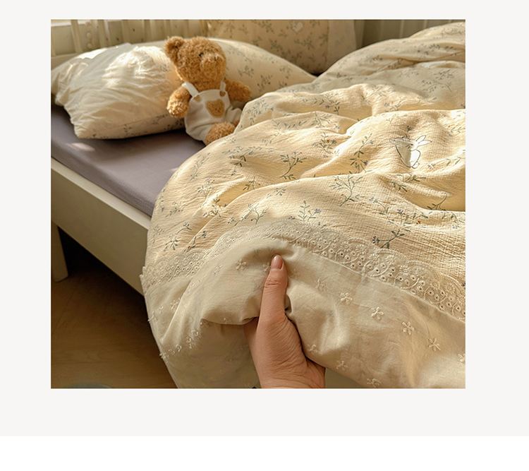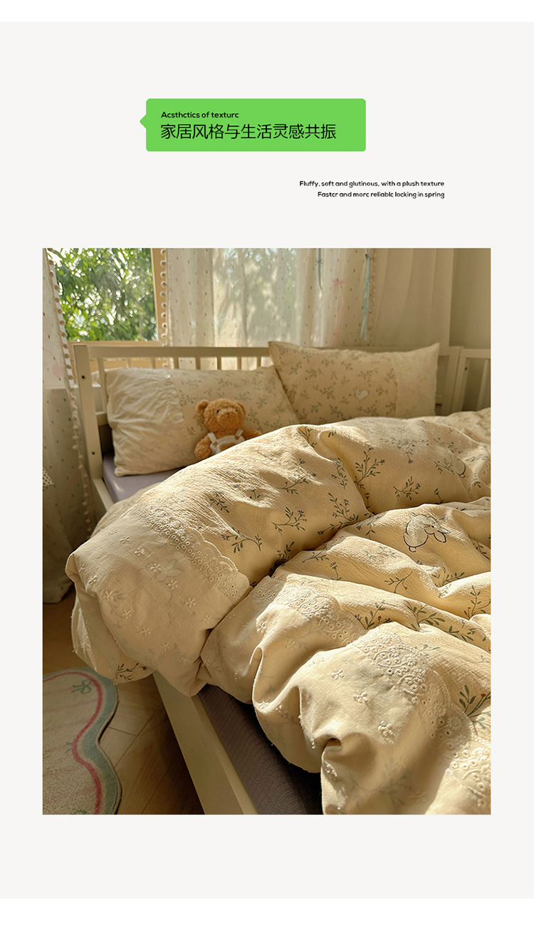 当前位置: 91家纺网 > 商品网购 > 床品套件 > 四件套 > 双层纱四件套 > 沐芷 2025 蕾丝花边A类木棉双层纱四件套公主风床单被套宿舍三件套少女心 宽花边-花园小兔