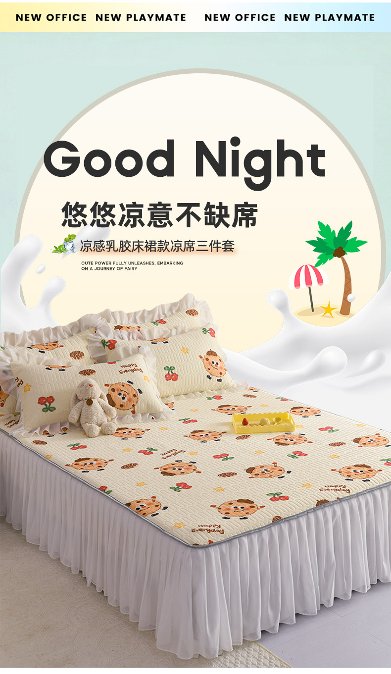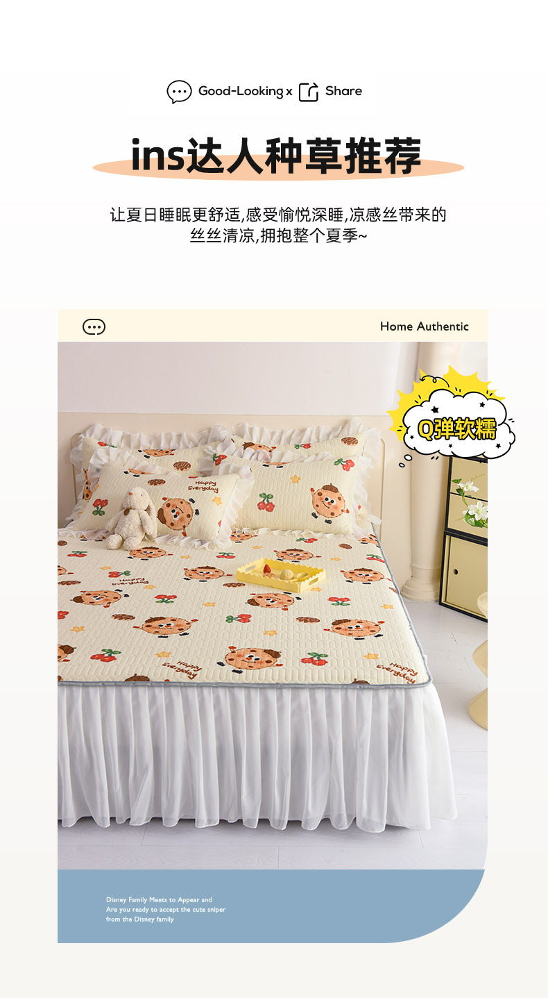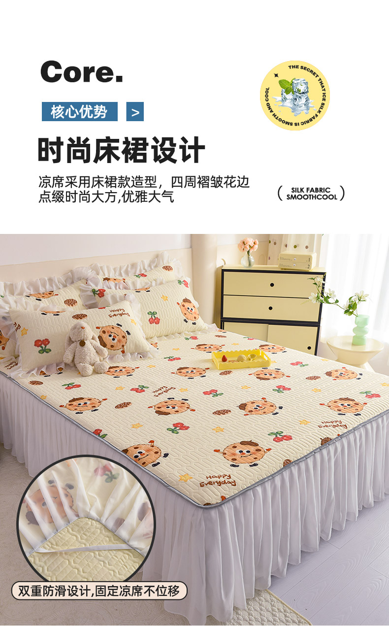 当前位置: 91家纺网 > 商品网购 > 床上用品 > 凉席 > 其他凉席 > 悦织湾家纺 2025新款A类0.5厚床裙款印花乳胶凉席三件套 欢乐曲奇