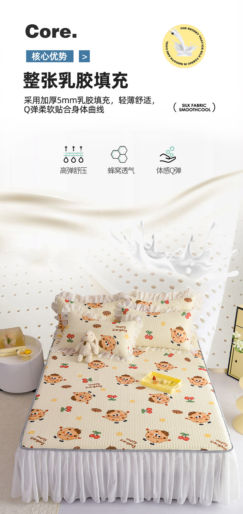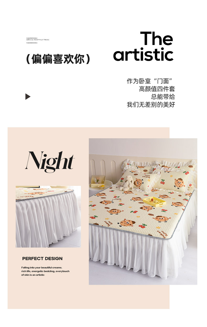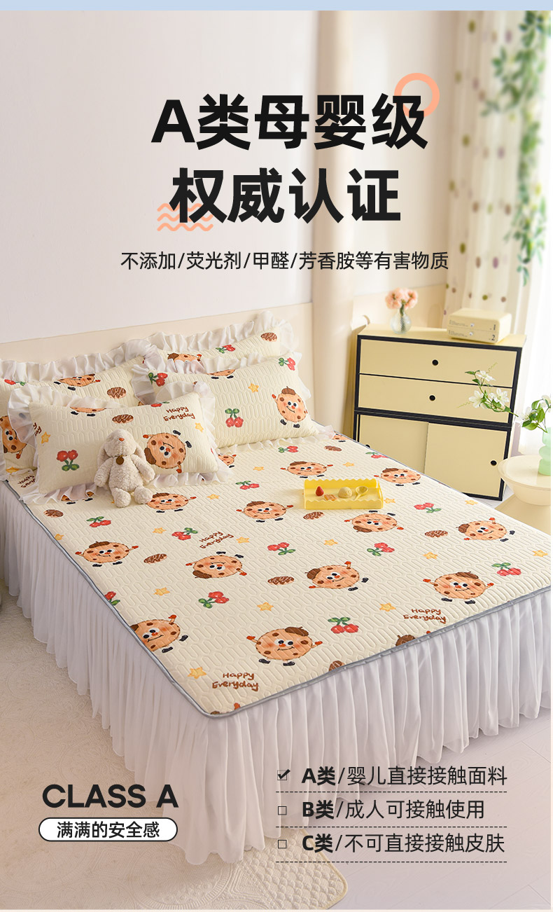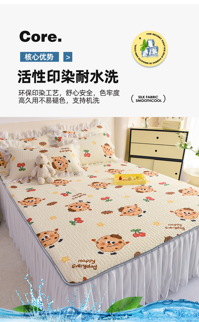 当前位置: 91家纺网 > 商品网购 > 床上用品 > 凉席 > 其他凉席 > 悦织湾家纺 2025新款A类0.5厚床裙款印花乳胶凉席三件套 欢乐曲奇
