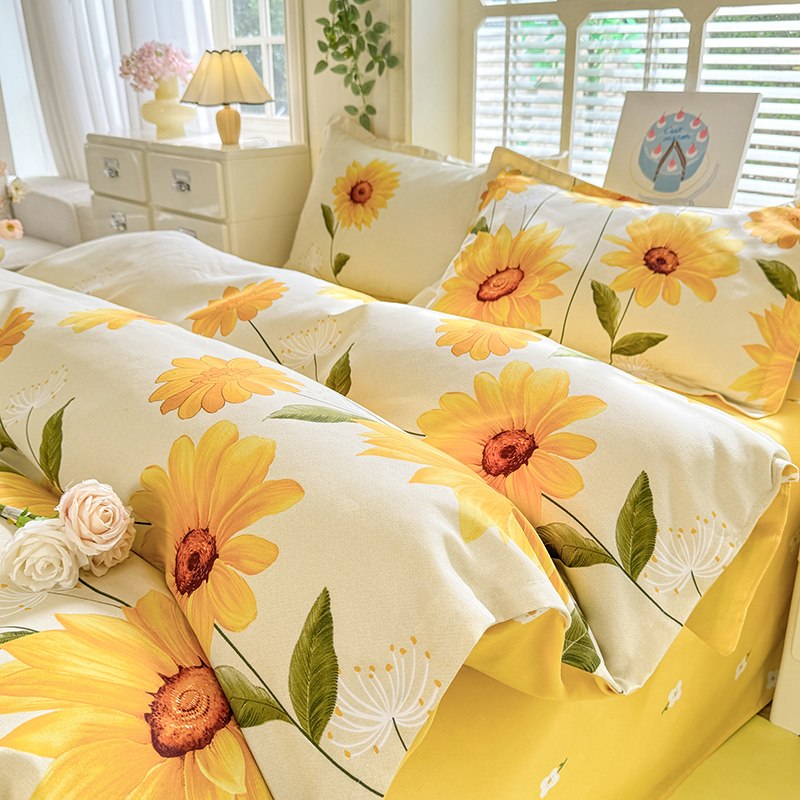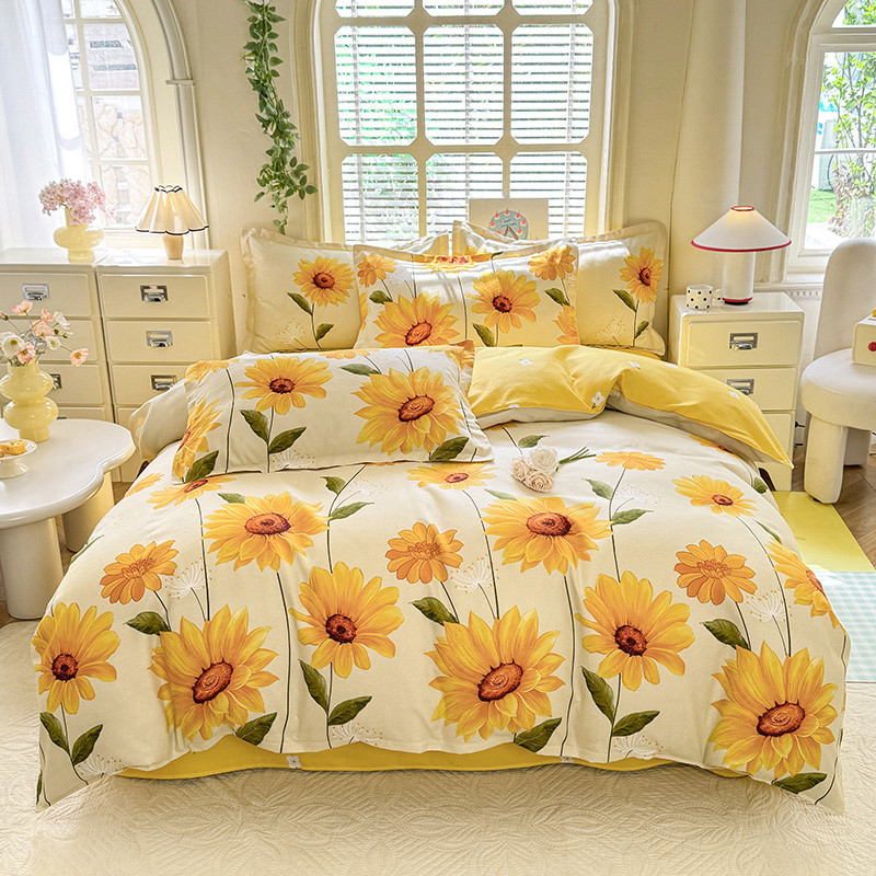 优逸家纺 2025新款植物羊绒小清新斜纹磨毛四件套,暖意花开