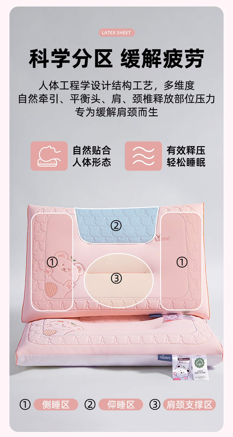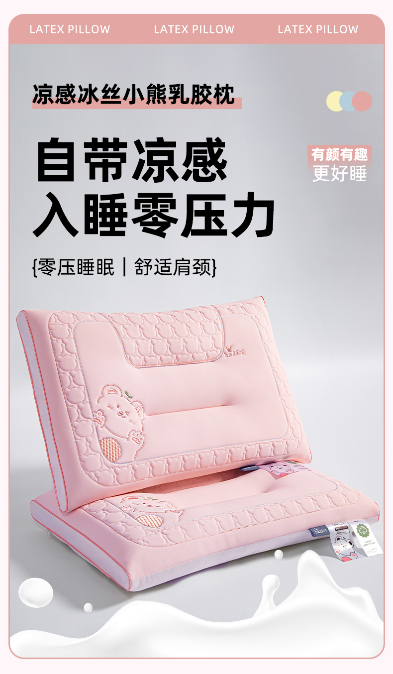商品名称:(总)织布人 2025新款枕芯夏季凉感冰丝小熊乳胶枕头防出汗儿童学生成人亲子枕