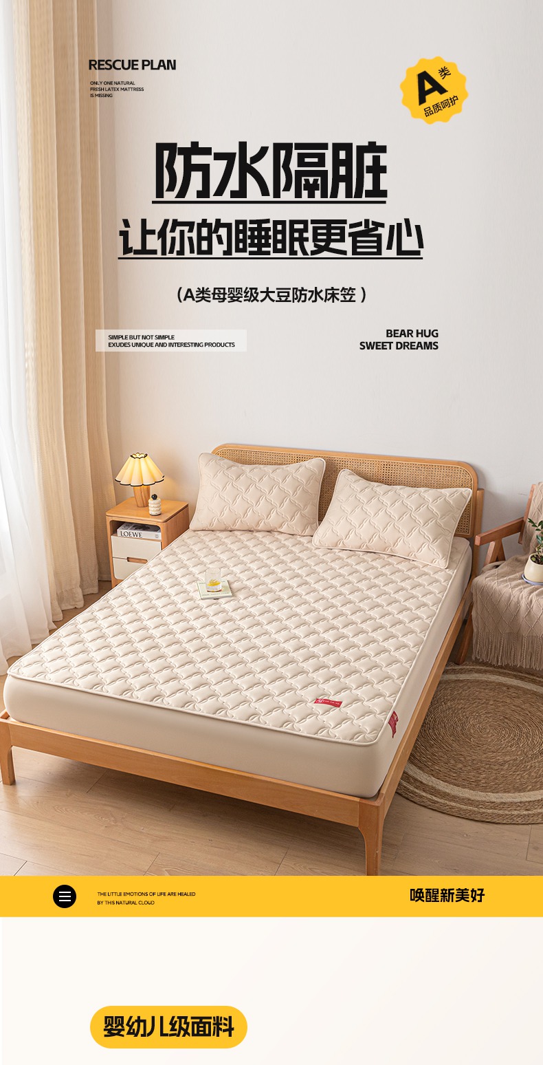 芬晴家纺 2025新款母婴级大豆防水床笠-马丁-风车 风车-卡其
