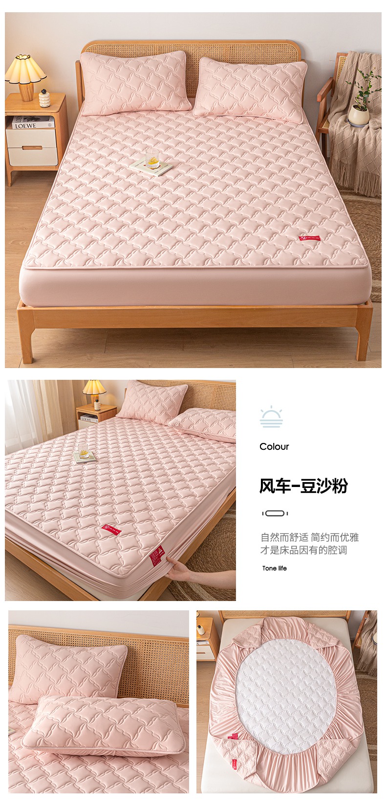 • 91家纺网 家纺一手货源 找家纺 芬晴家纺 2025新款母婴级大豆防水床笠-马丁-风车 风车-卡其