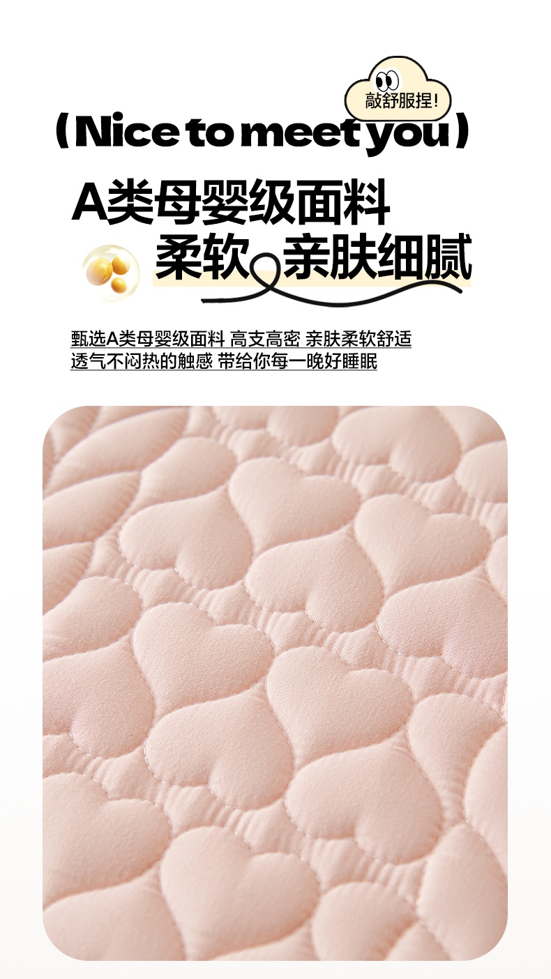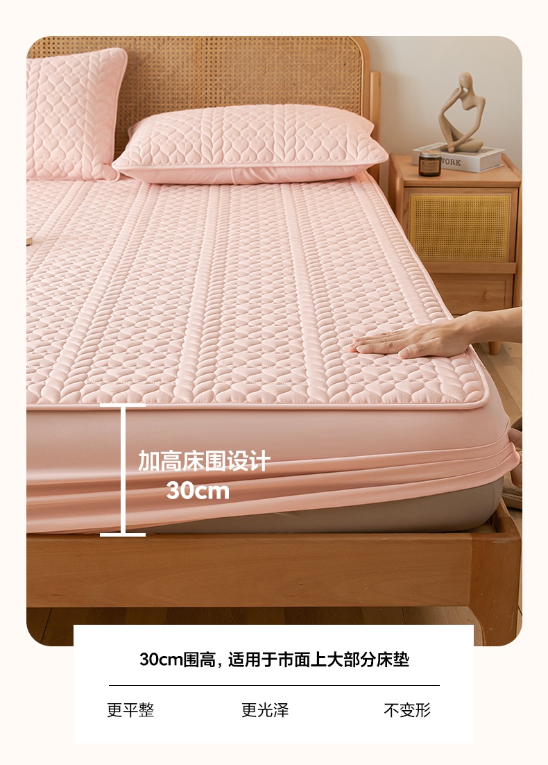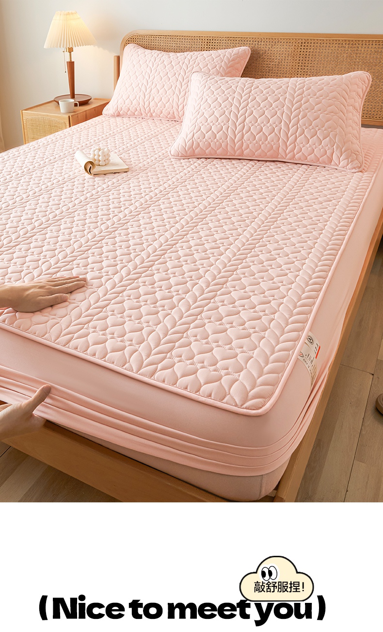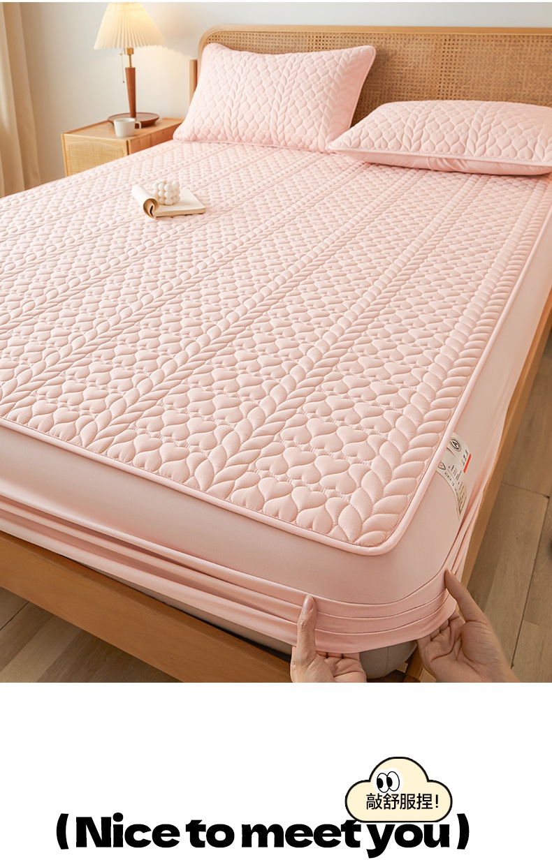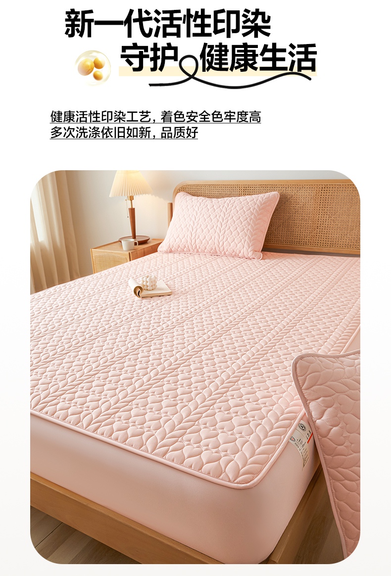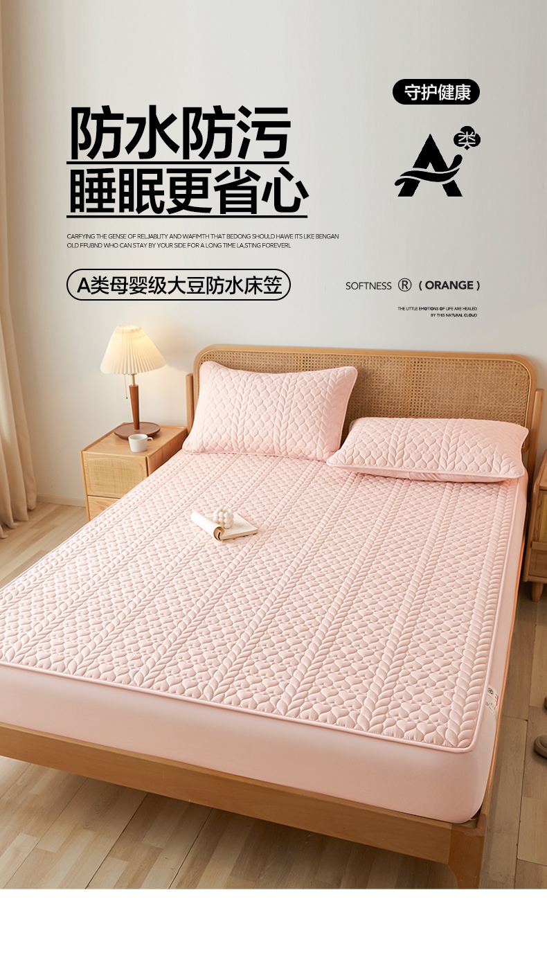 • 91家纺网 家纺一手货源 找家纺 芬晴家纺 2025新款A类母婴级大豆防水夹棉床笠系列-约定-心动-繁花 约定-豆沙粉