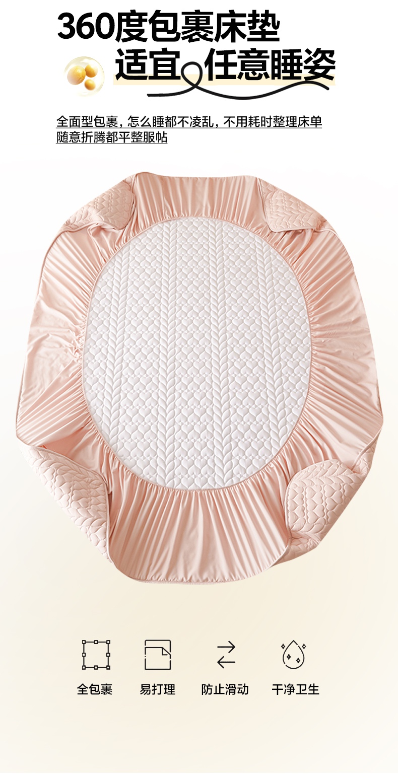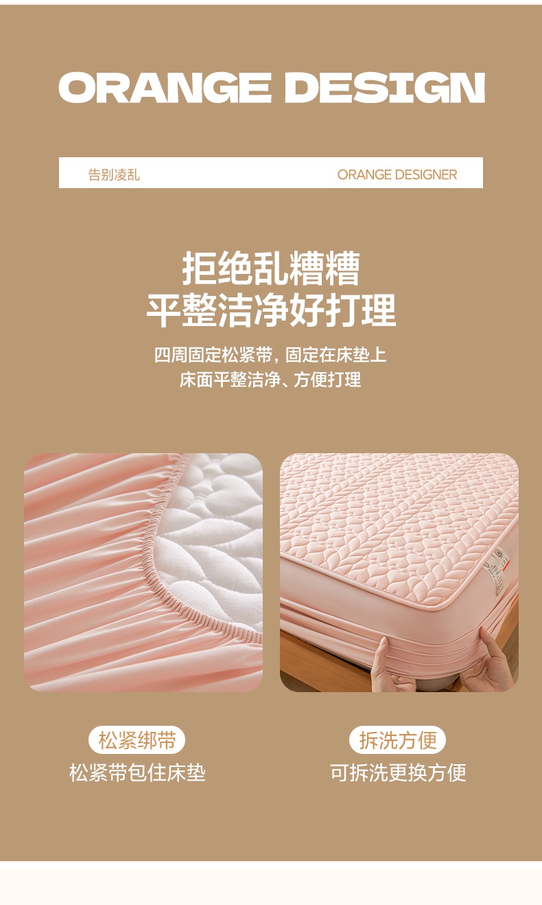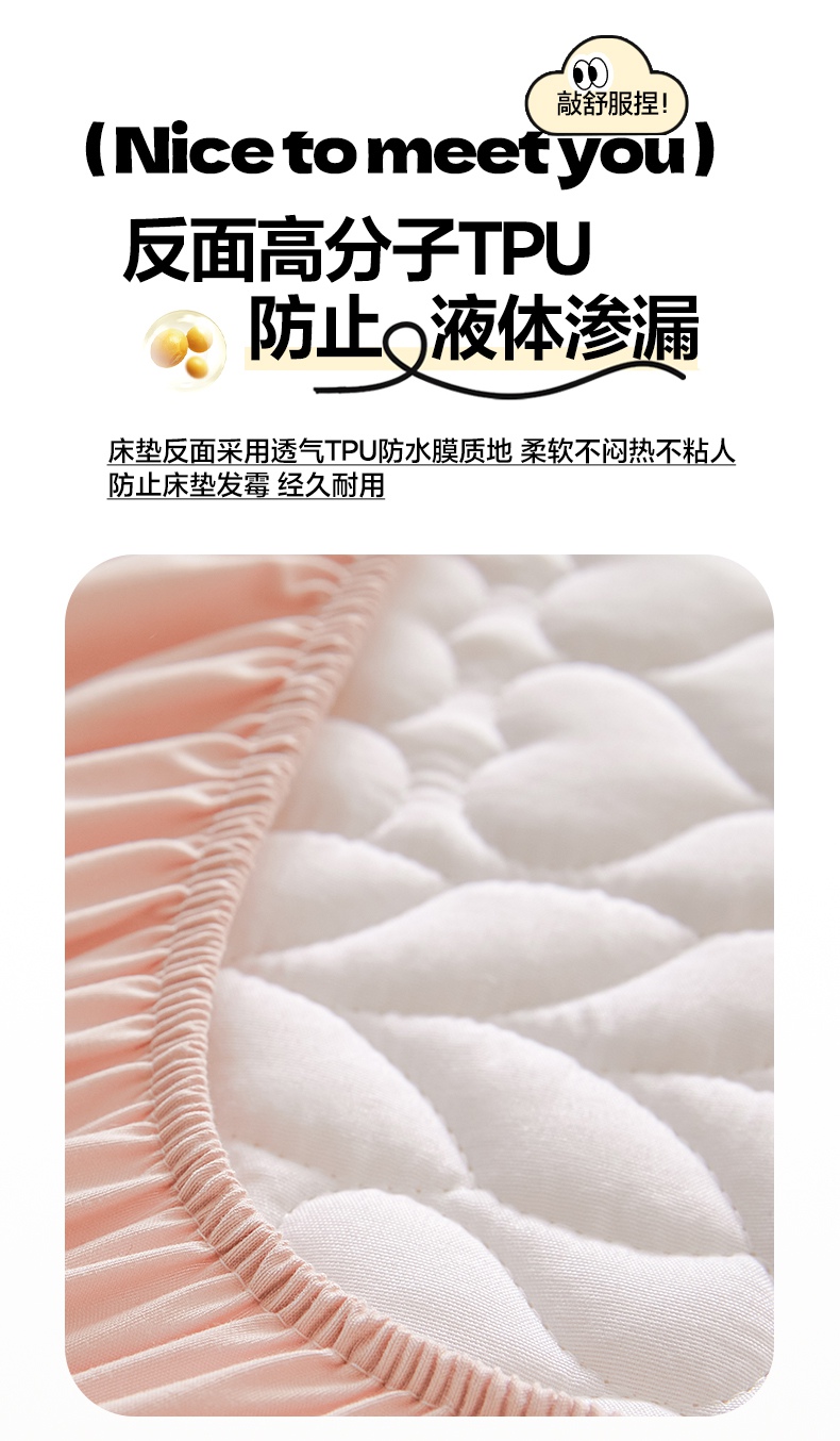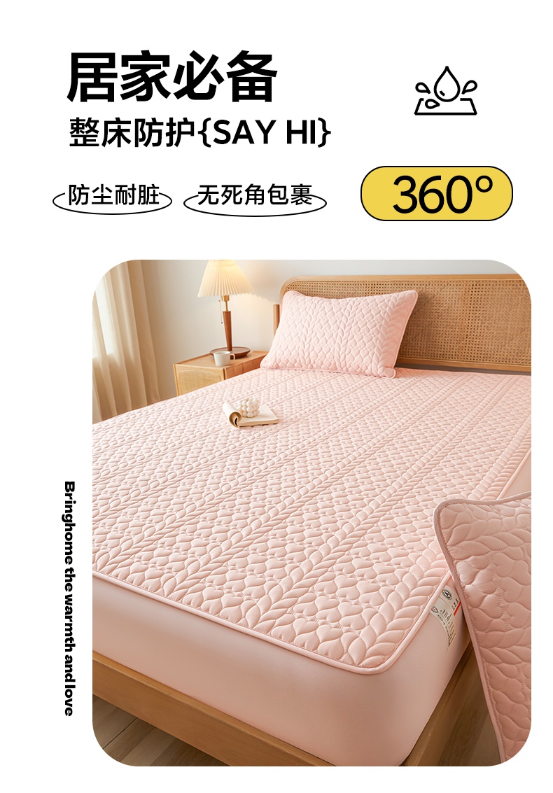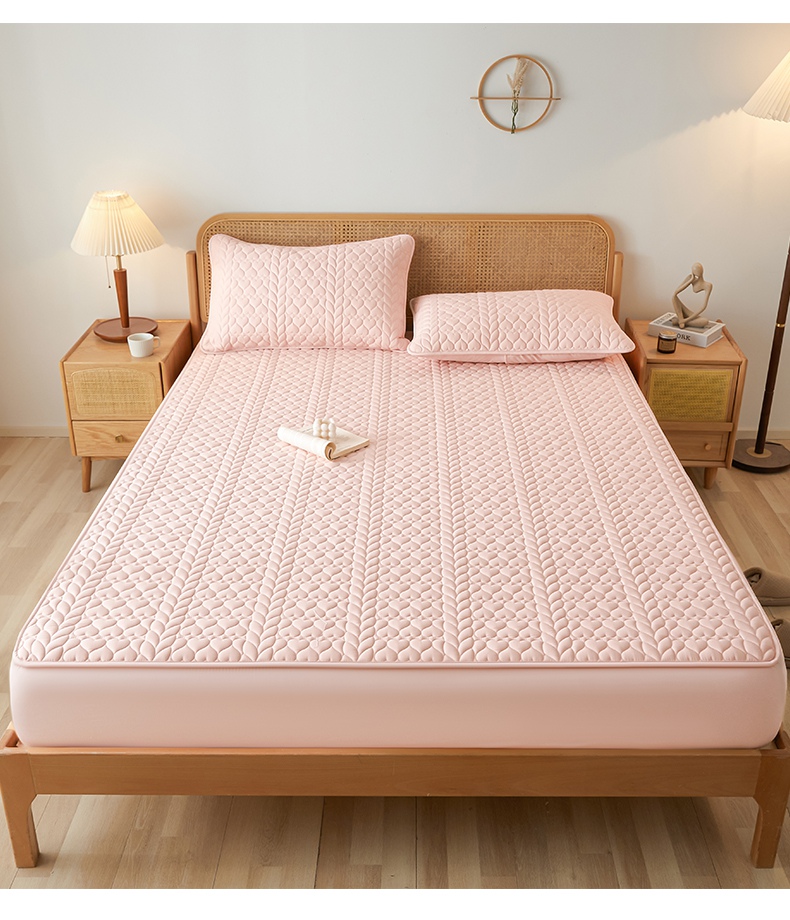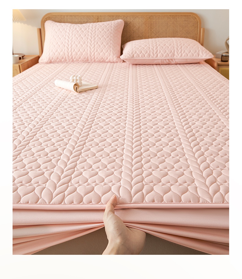 • 91家纺网 家纺一手货源 找家纺 芬晴家纺 2025新款A类母婴级大豆防水夹棉床笠系列-约定-心动-繁花 约定-豆沙粉