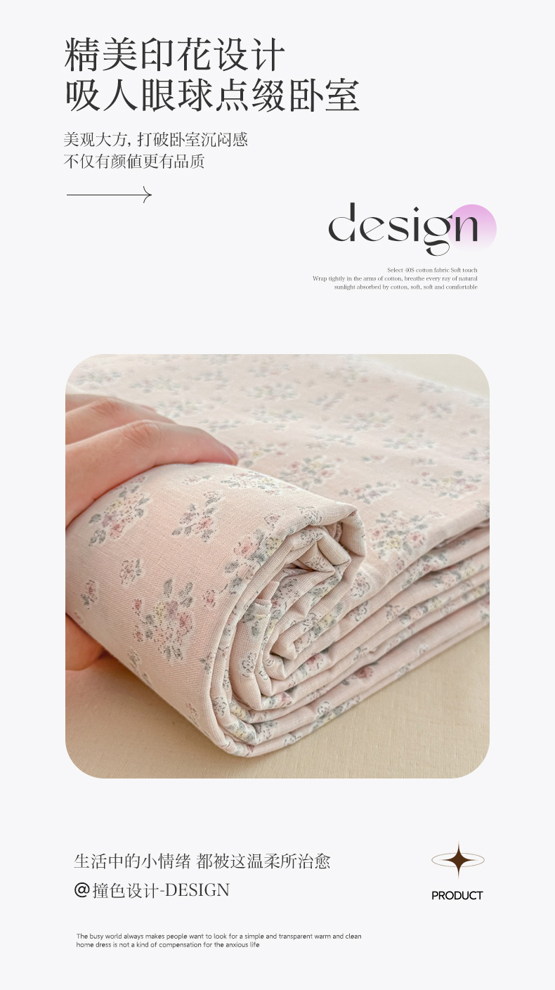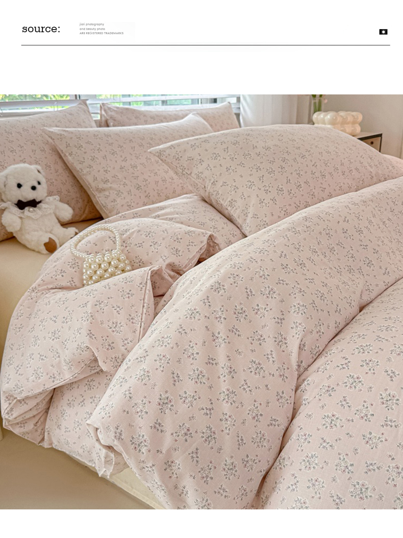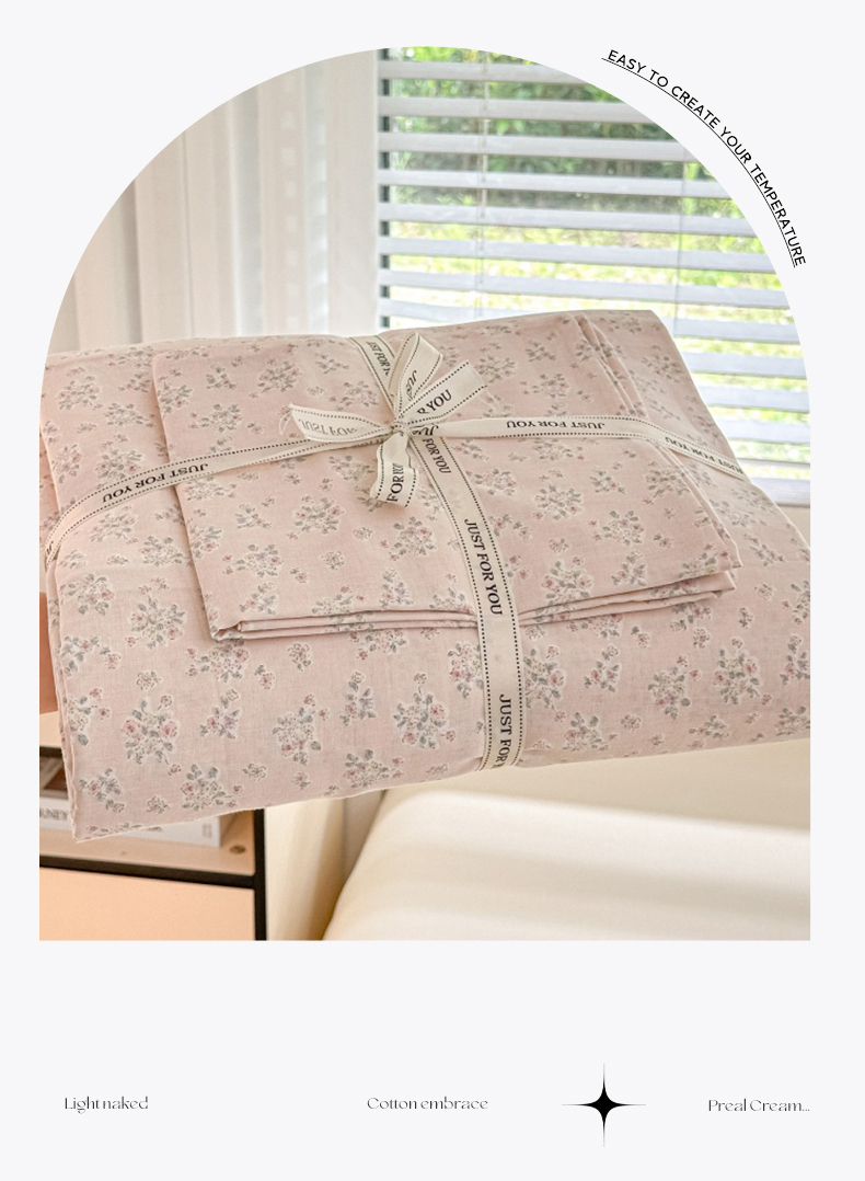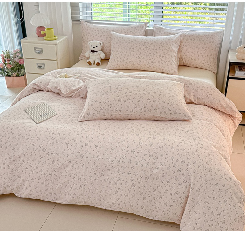 • 91家纺网 家纺一手货源 找家纺 芙绣家纺 2025新款A类全棉双层纱小清新印花单被套学生单被套单枕套 花间絮语