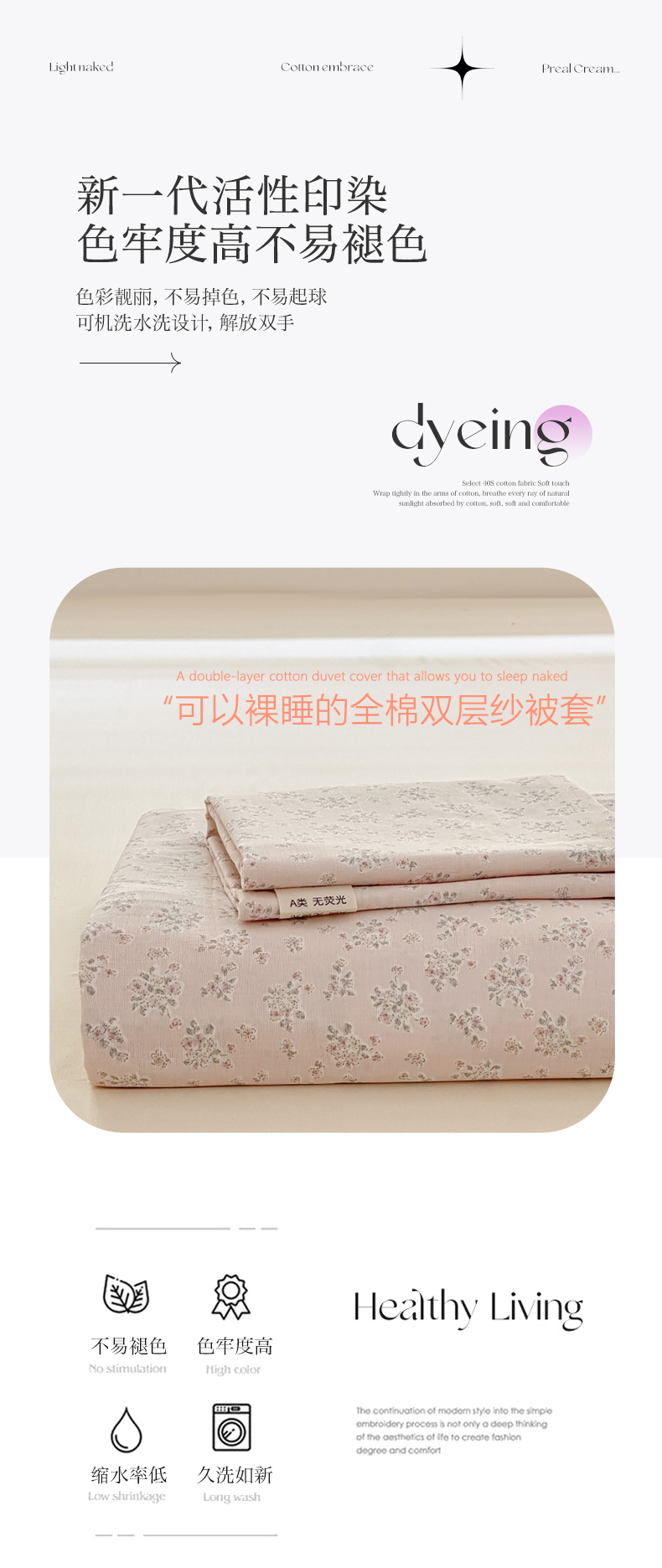 当前位置: 91家纺网 > 商品网购 > 床上用品 > 被套 > 芙绣家纺 2025新款A类全棉双层纱小清新印花单被套学生单被套单枕套 花间絮语